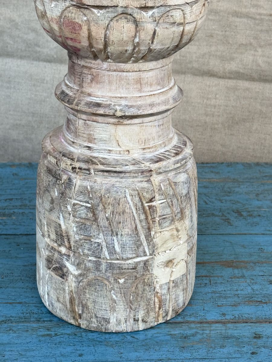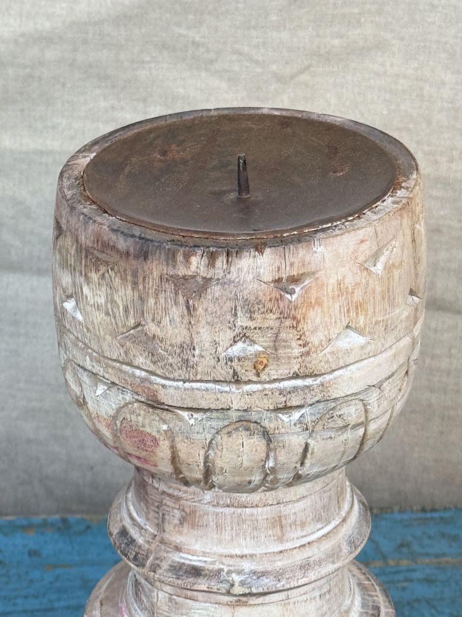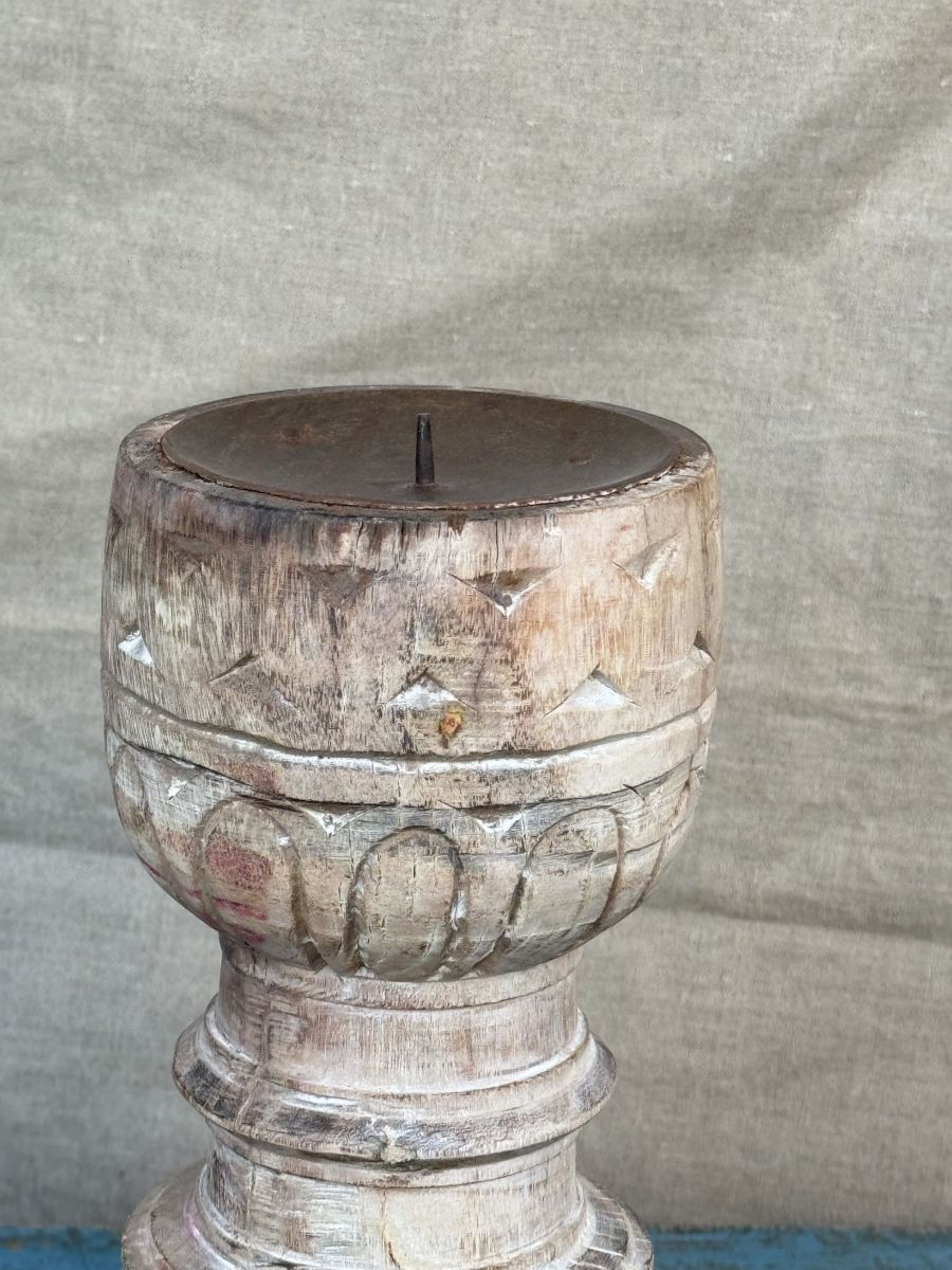 carved wooden candle-holder 31 cm high fairly heavy and stable craft product ref 4A
