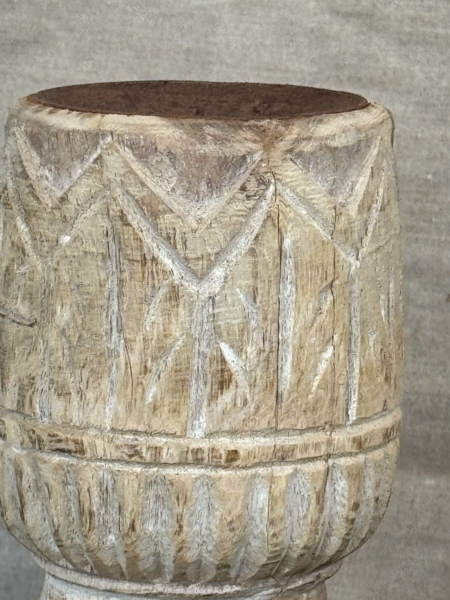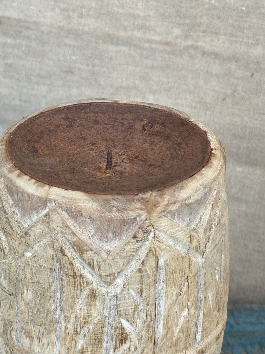 carved wooden candlestick, 24 cm high, fairly heavy and stable craft product ref 2A