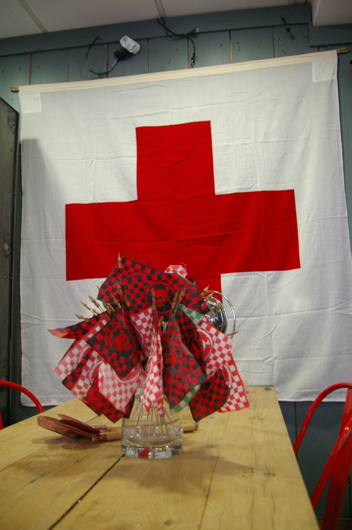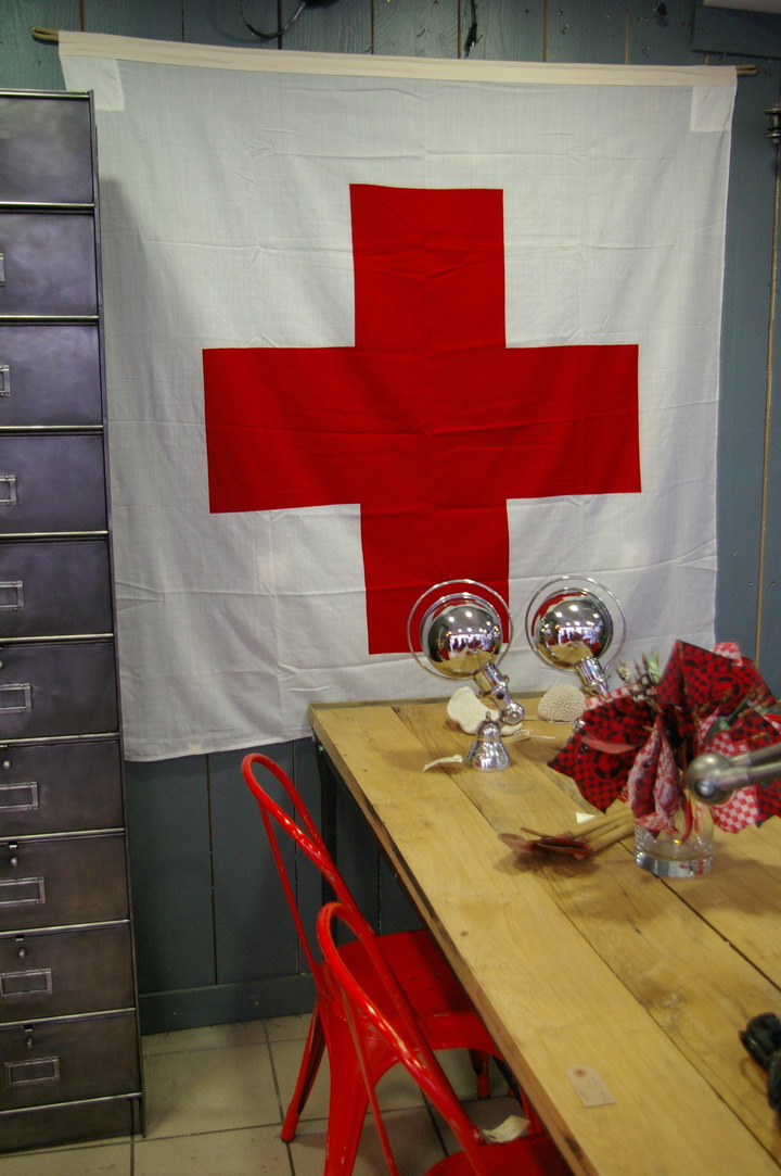 Swiss army medical service flag Size 150/150 cm beautifully finished, 2 rope ties ideal for adding colour to an industrial setting