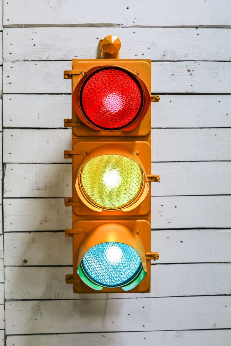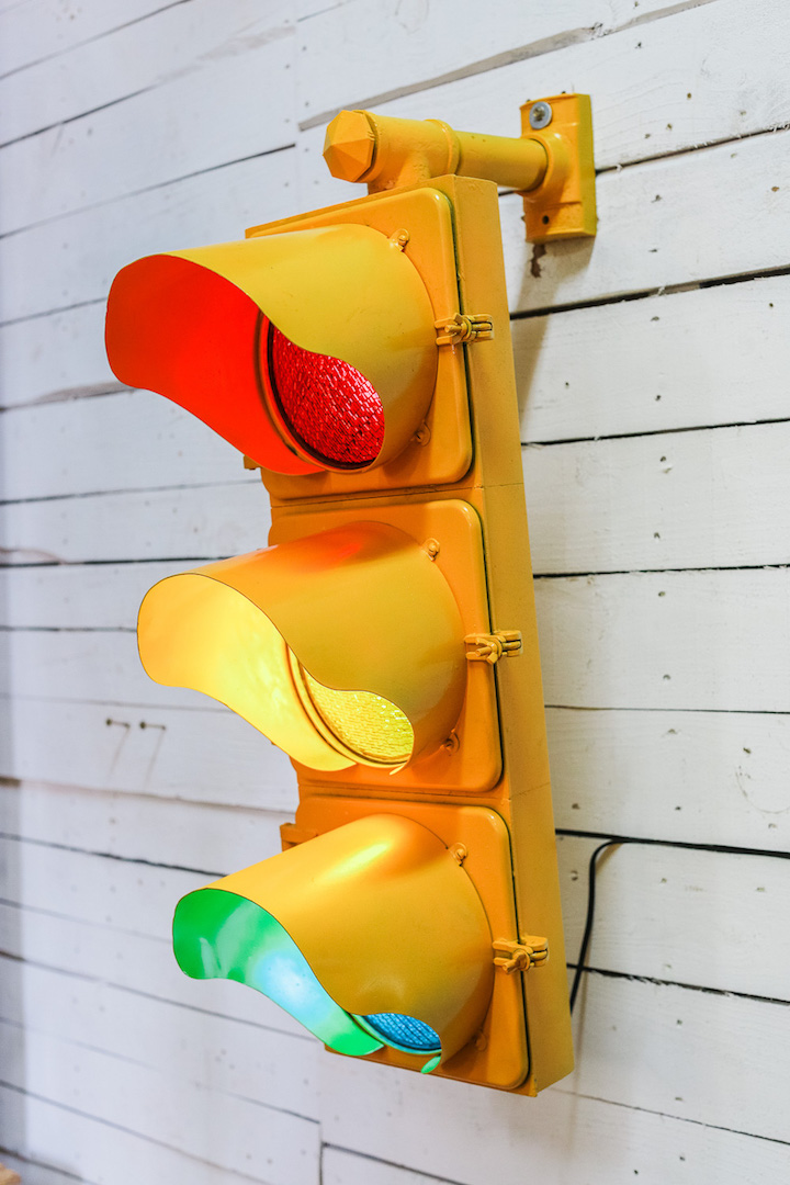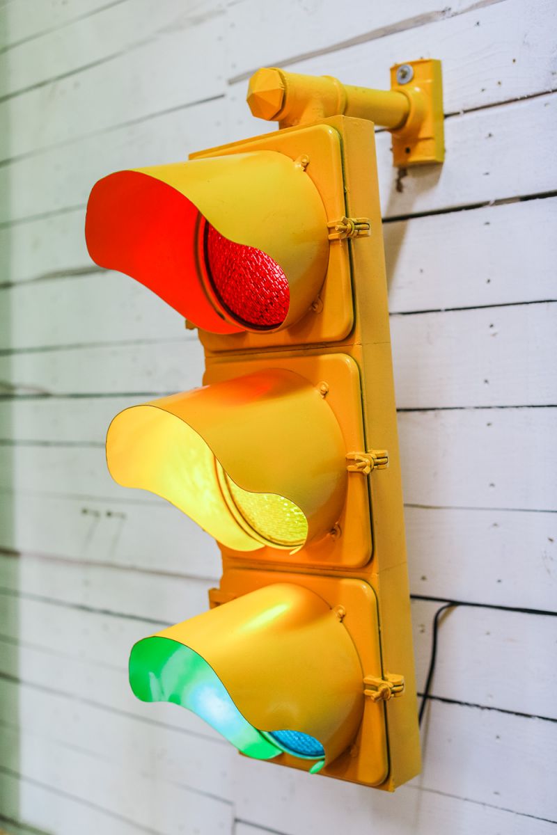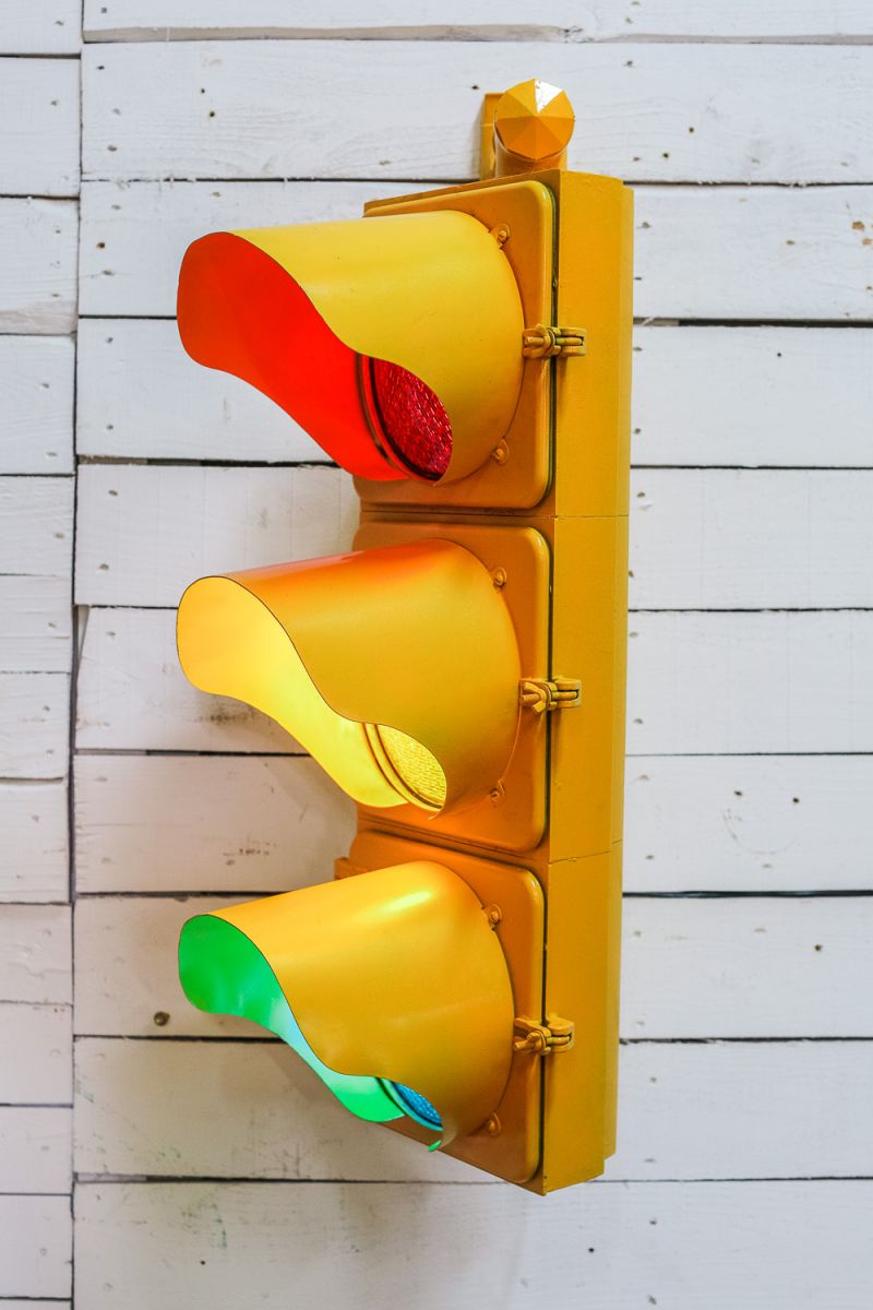 Semaforo americano Chicago vintage USA giallo in succo con montaggio a parete
