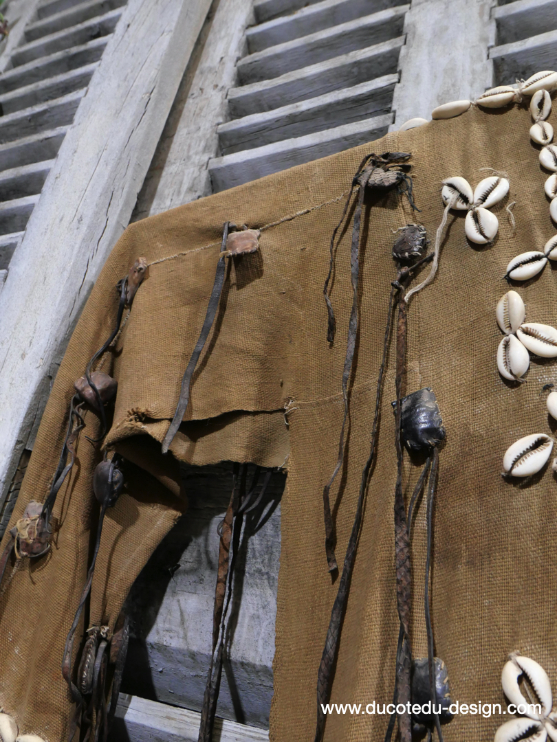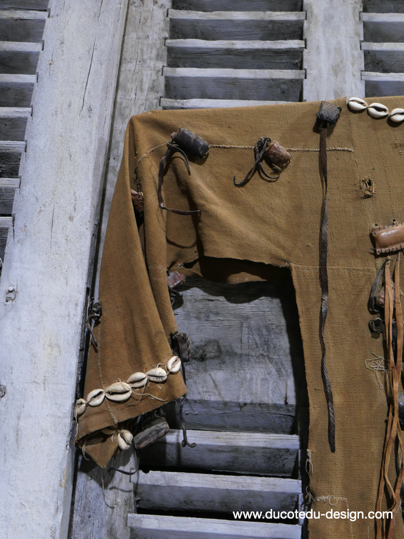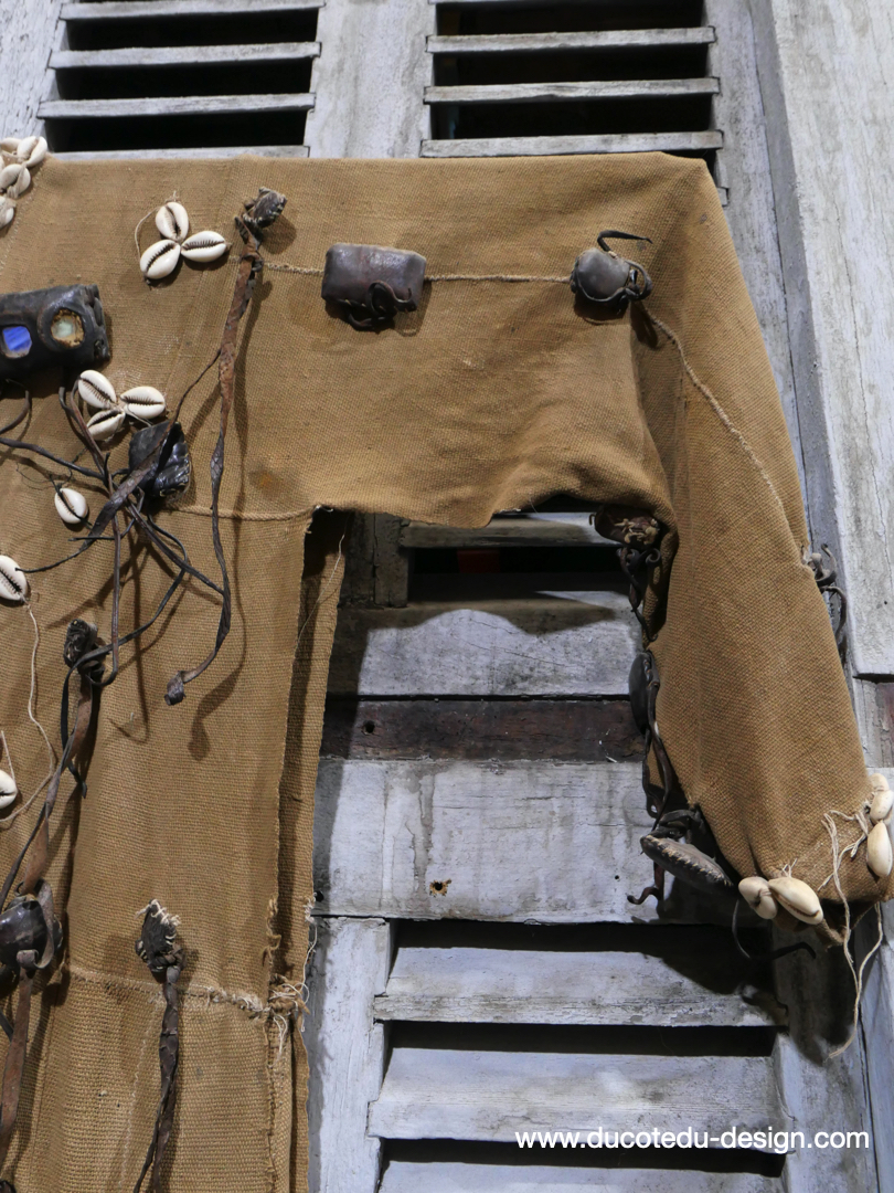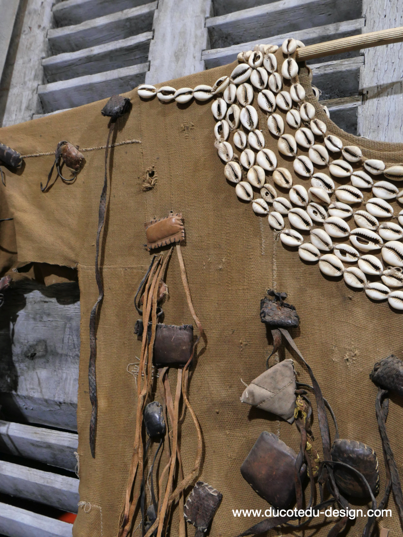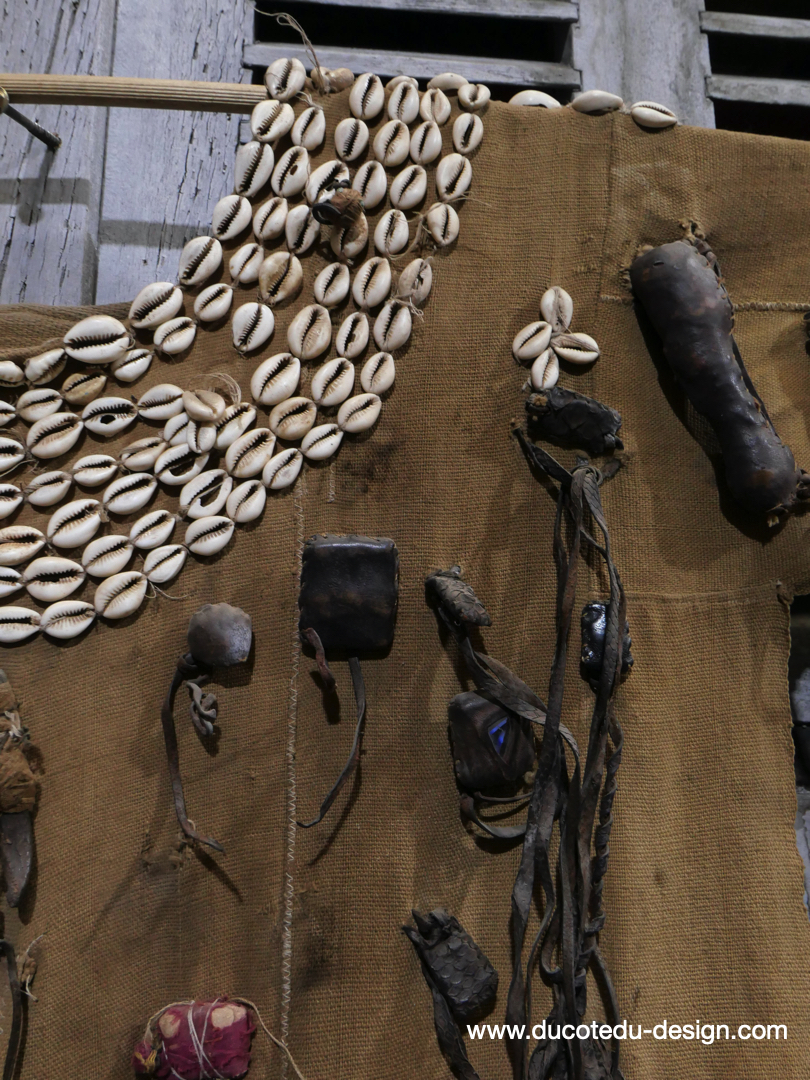 Veste ethnique costume de chasse d'Afrique portant des reliques et des talismans haut 110 cm / larg 158 cm