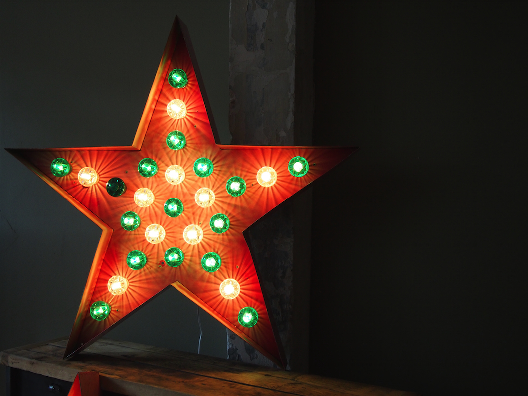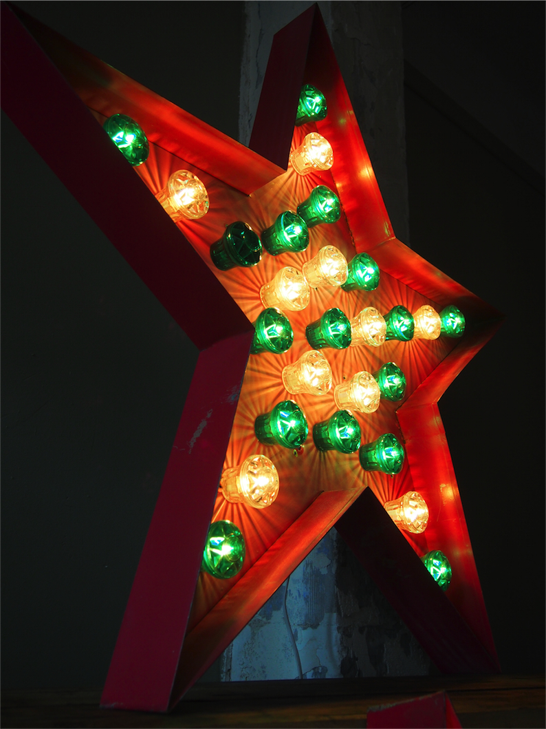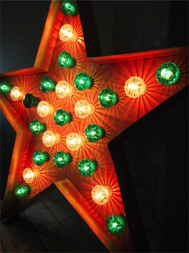 enorme etoile lettre d'ancienne enseigne lumineuse façon fete foraine