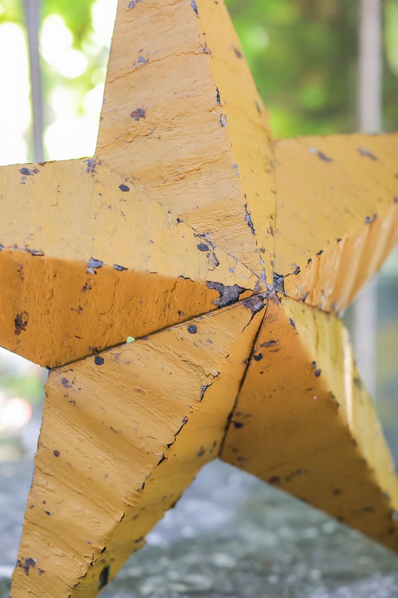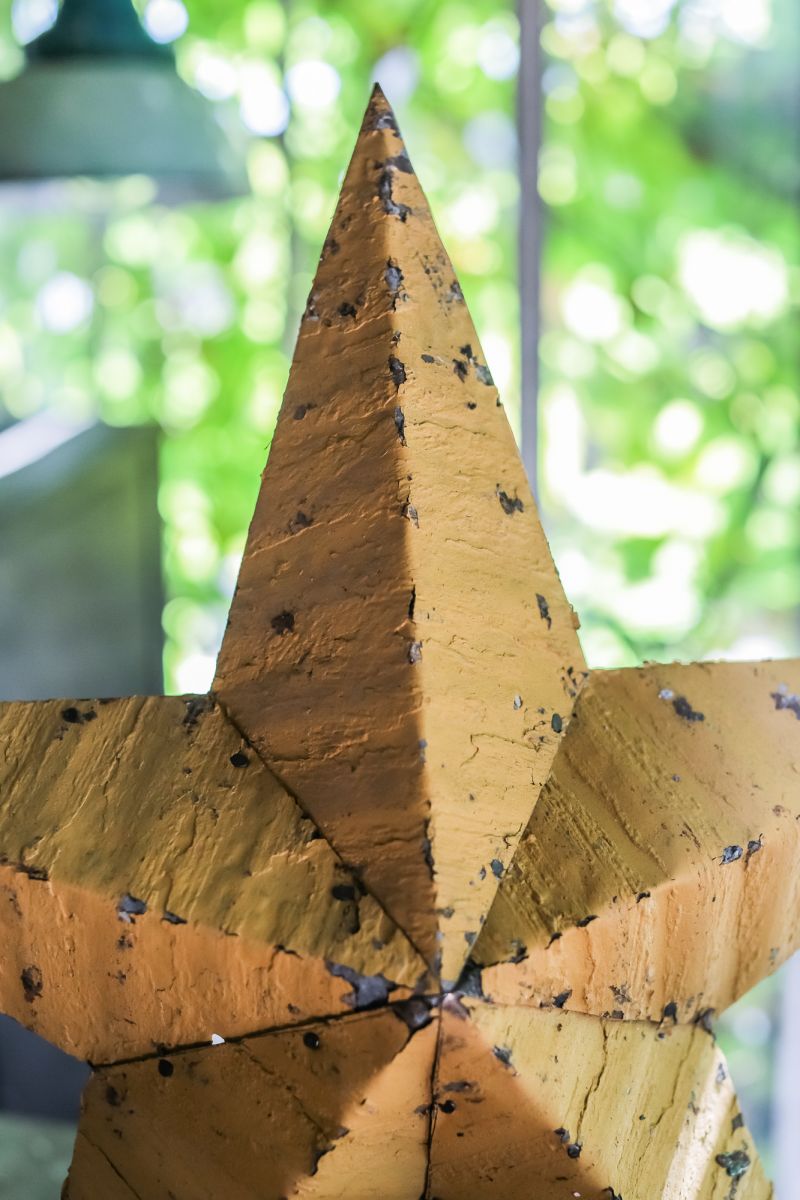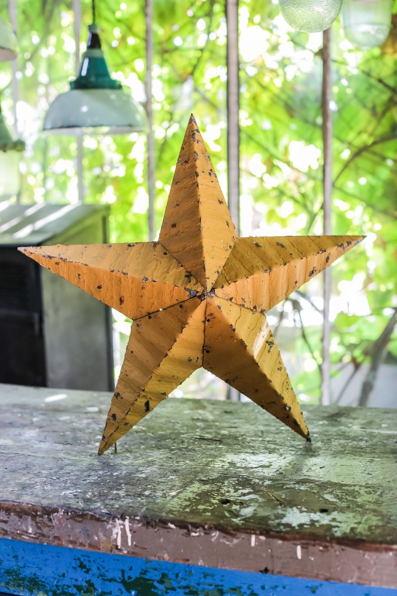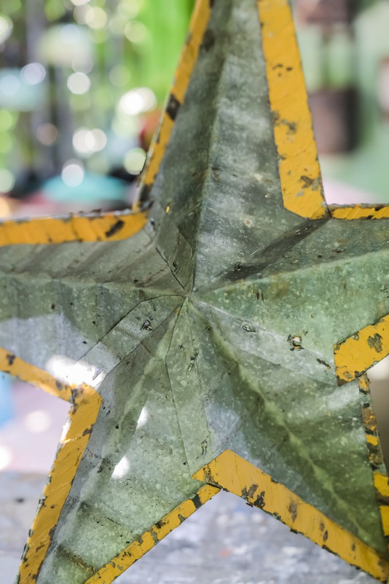 Etoile en zinc, decor de grange de la communauté Amish magnifique objet de déco à la peinture idealement patinée ces etoiles sont fabriquées par la communauté Amish aux etats unis avec les anciennes plaques de zinc servant aux toitures dim 60 cm
