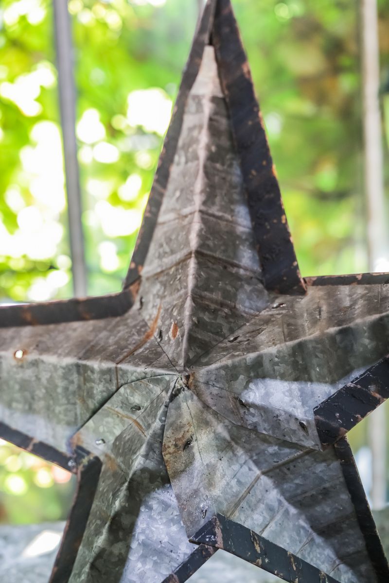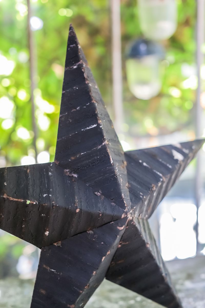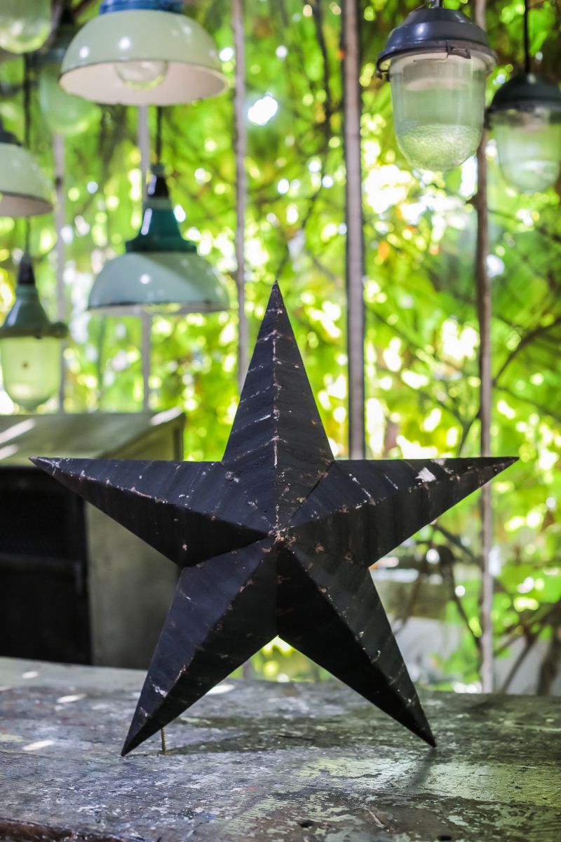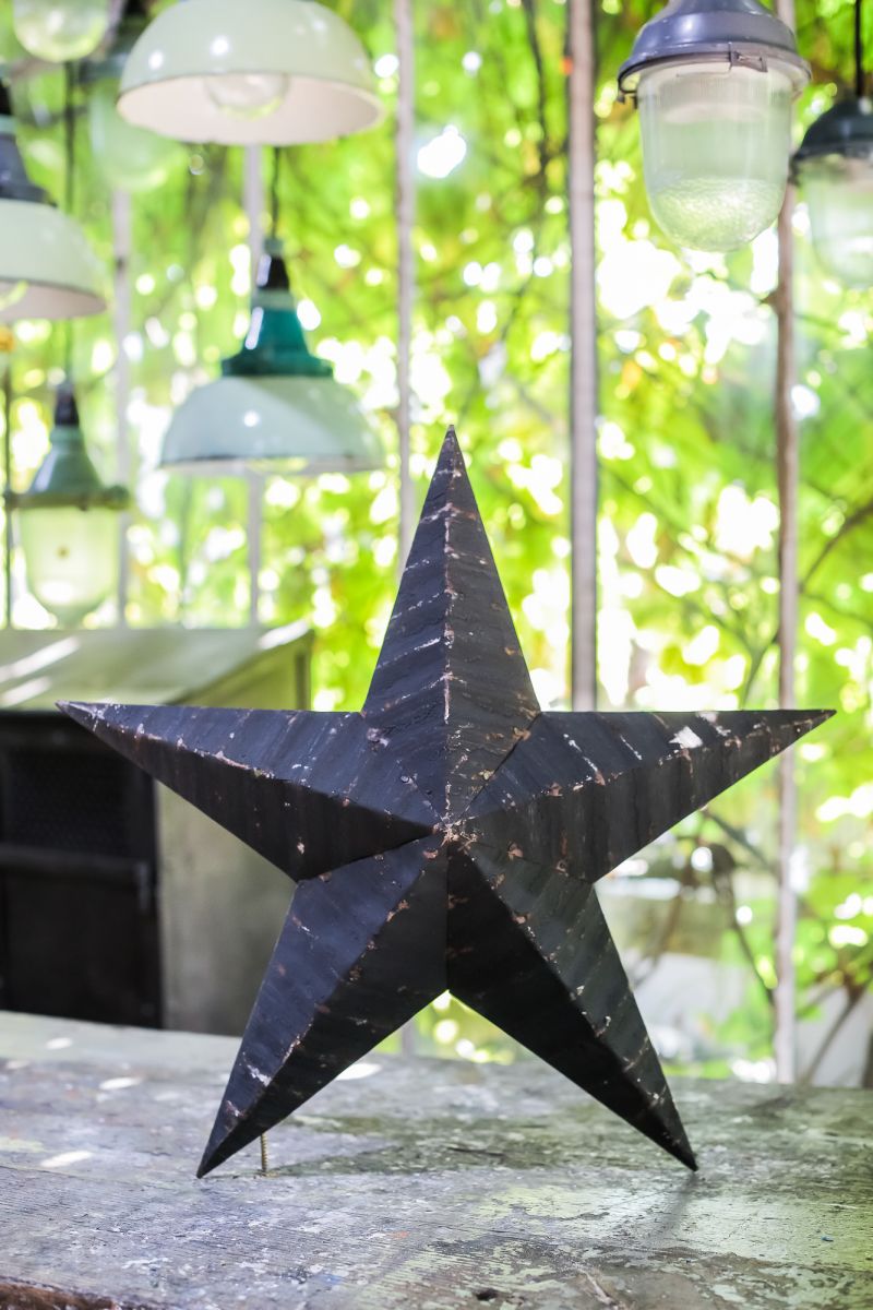 Etoile en zinc, decor de grange de la communauté Amish magnifique objet de déco à la peinture idealement patinée ces etoiles sont fabriquées par la communauté Amish aux etats unis avec les anciennes plaques de zinc servant aux toitures dim 60 cm