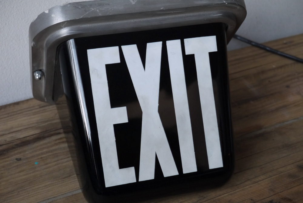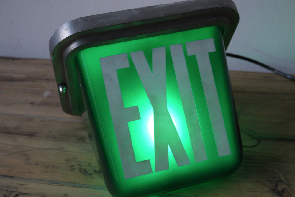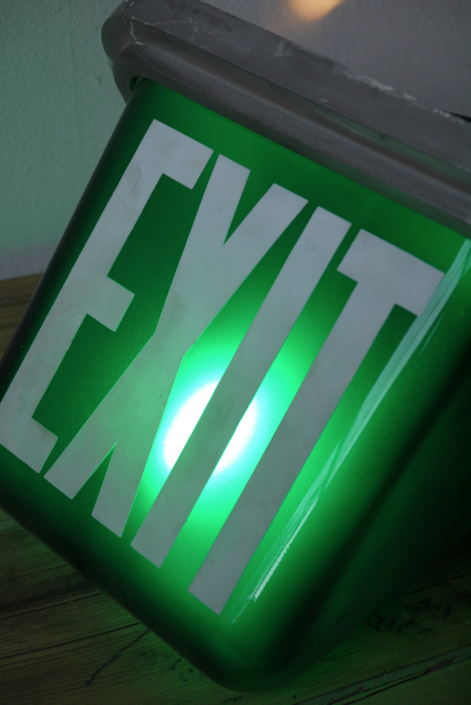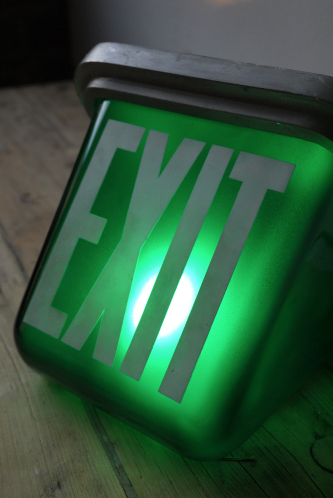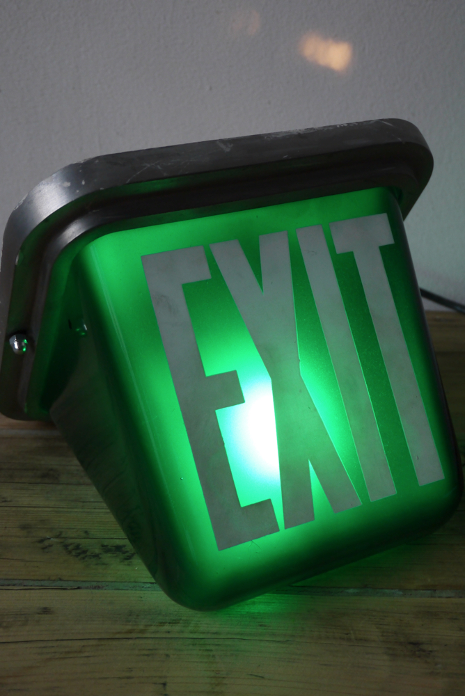 Exit grande Lampe opaline origine USA verte, triangle double face haut. 18 cm , larg. 20,5 cm , dim. socle 22/20,5 cm douille à vis standard, possibilité d'adapter des ampoules economie d'energie