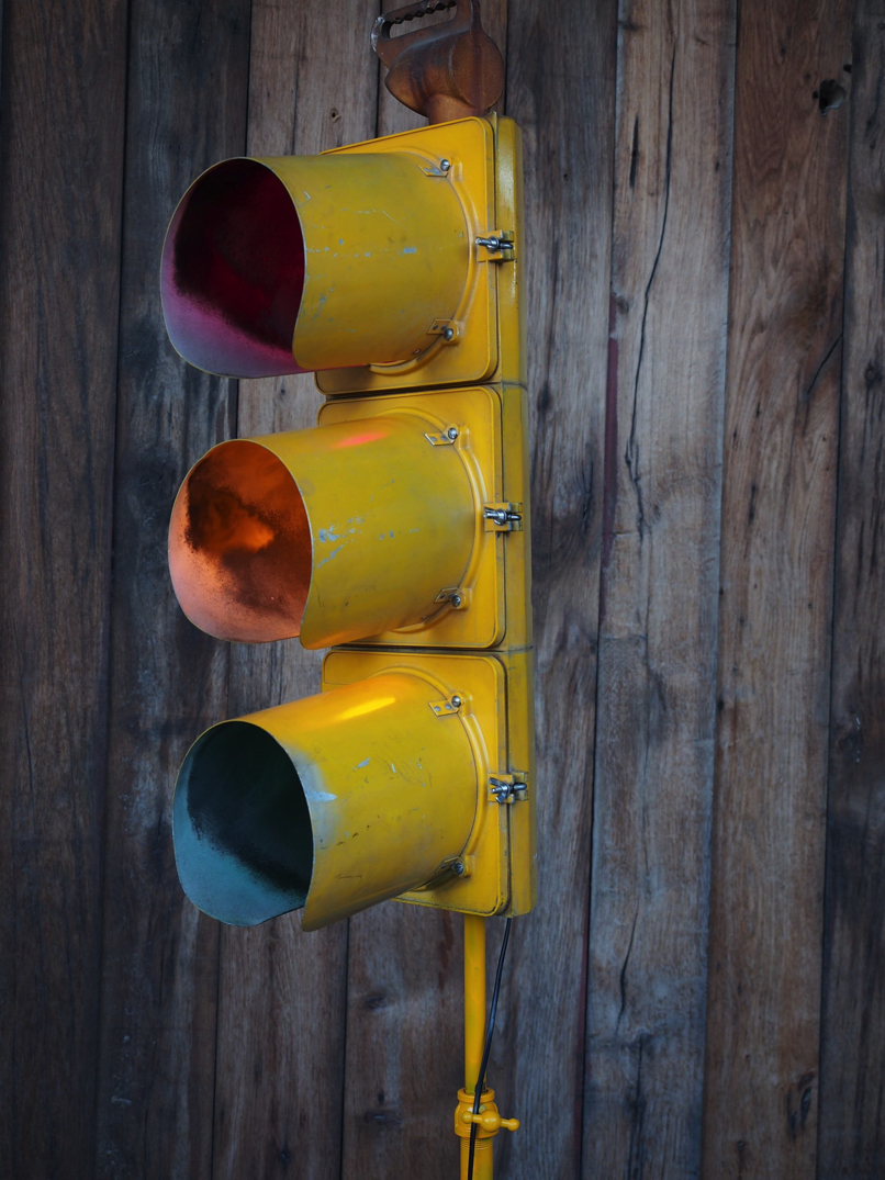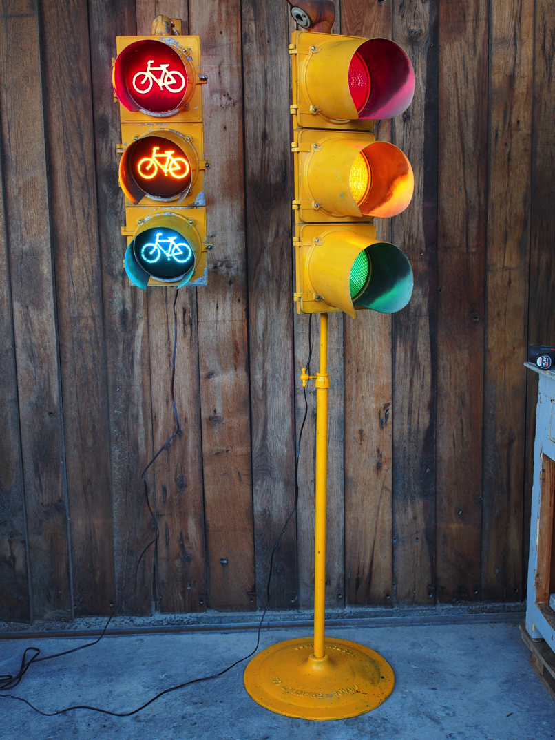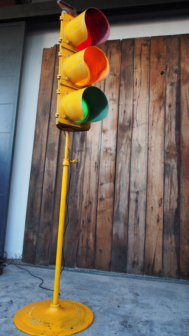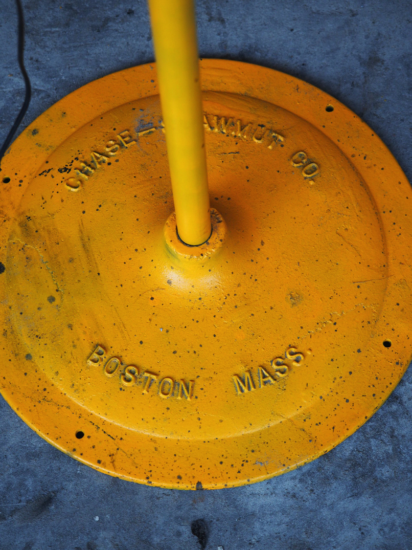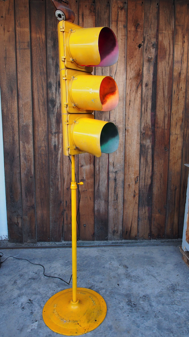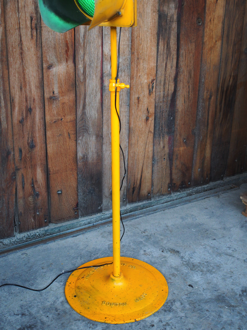 feu tricolore americain vintage sur pied de la ville de Boston USA jaune dans son jus eletricite en 220 v  / ampoules e27   magnifique objet de déco d'origine Dimensions : H / L:26 / P:40 cm