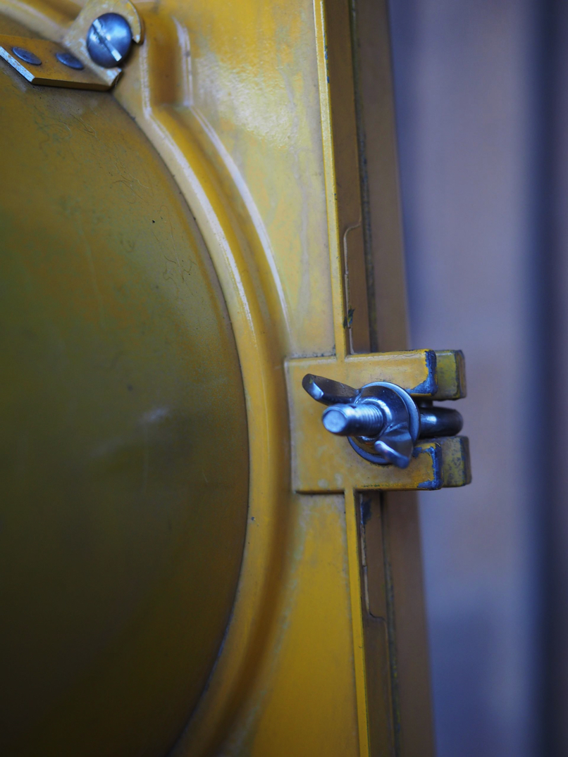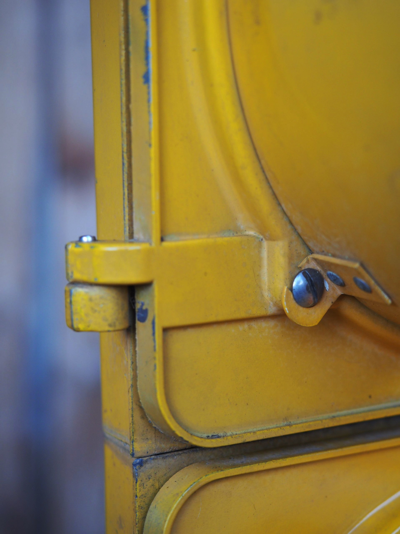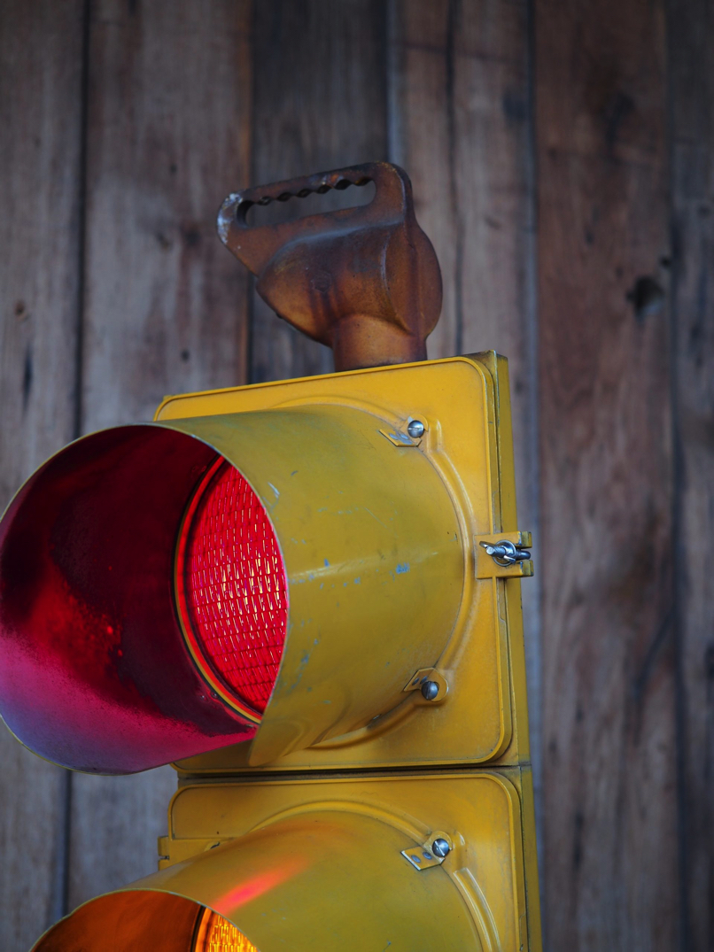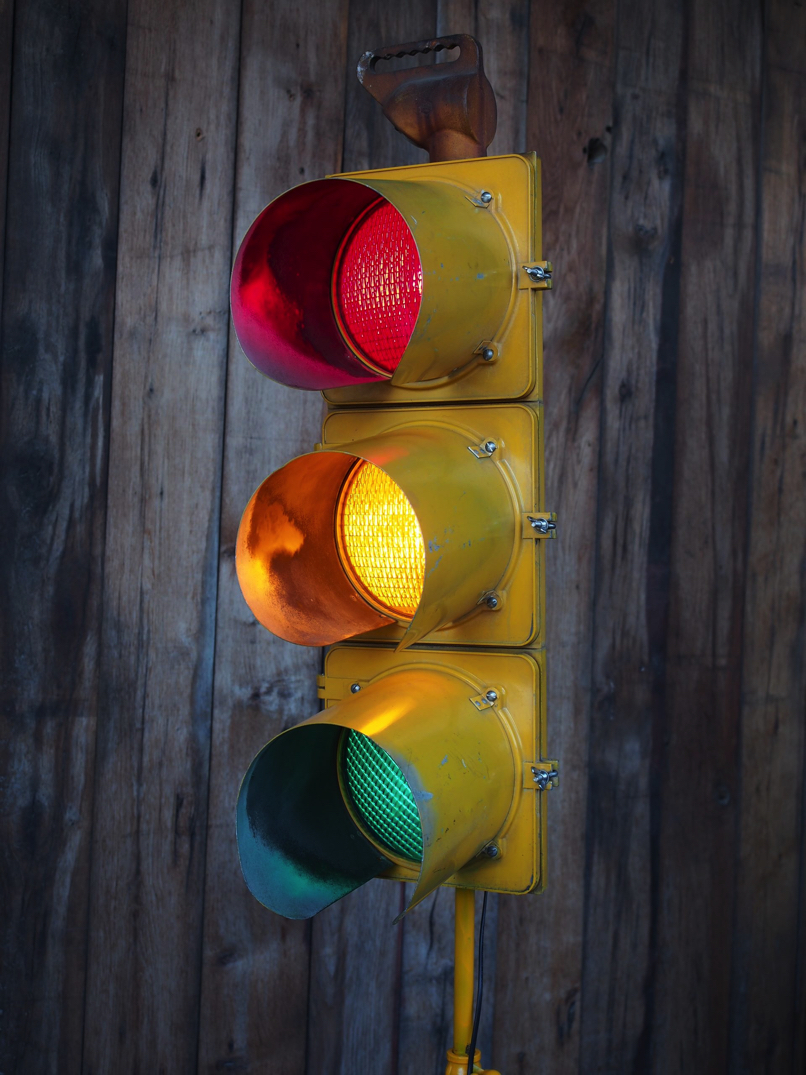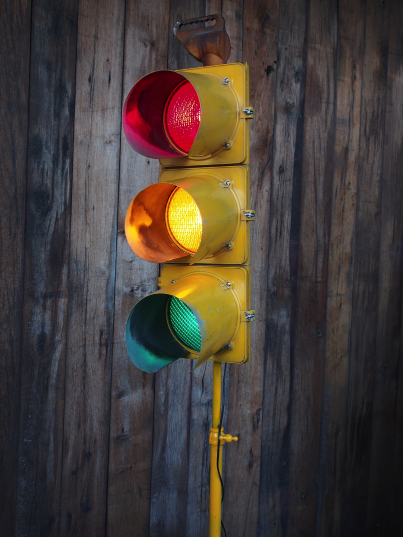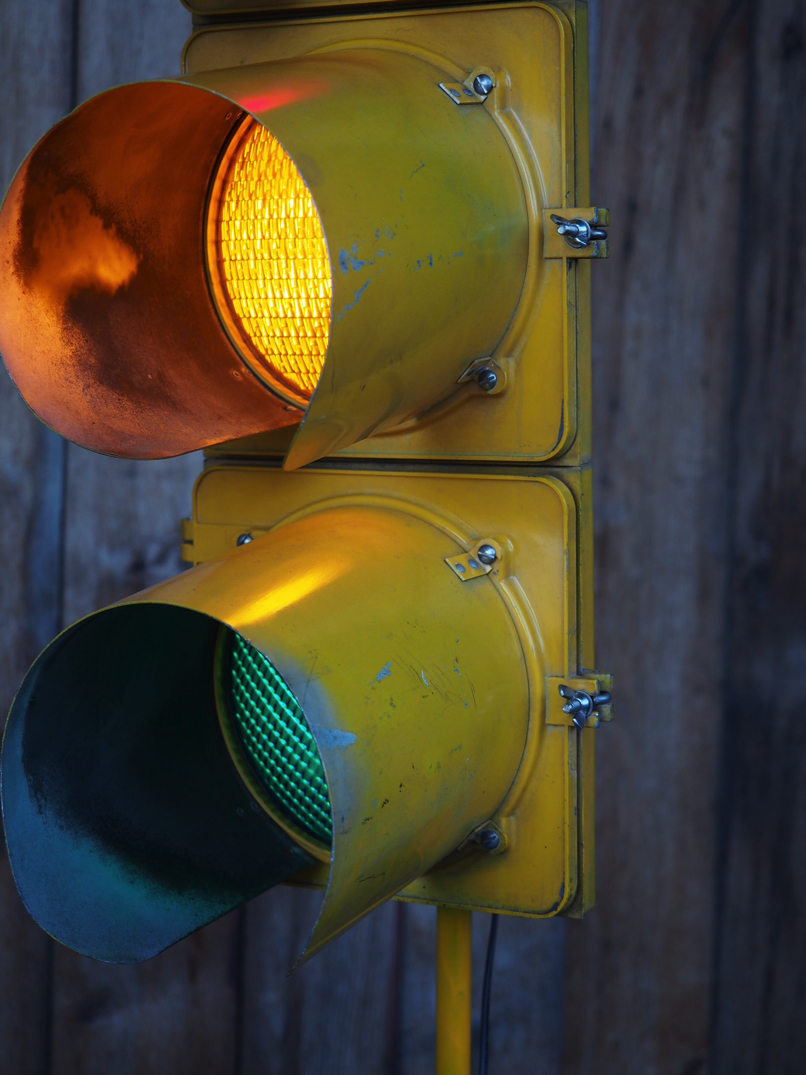 feu tricolore americain vintage sur pied de la ville de Boston USA jaune dans son jus eletricite en 220 v  / ampoules e27   magnifique objet de déco d'origine Dimensions : H / L:26 / P:40 cm