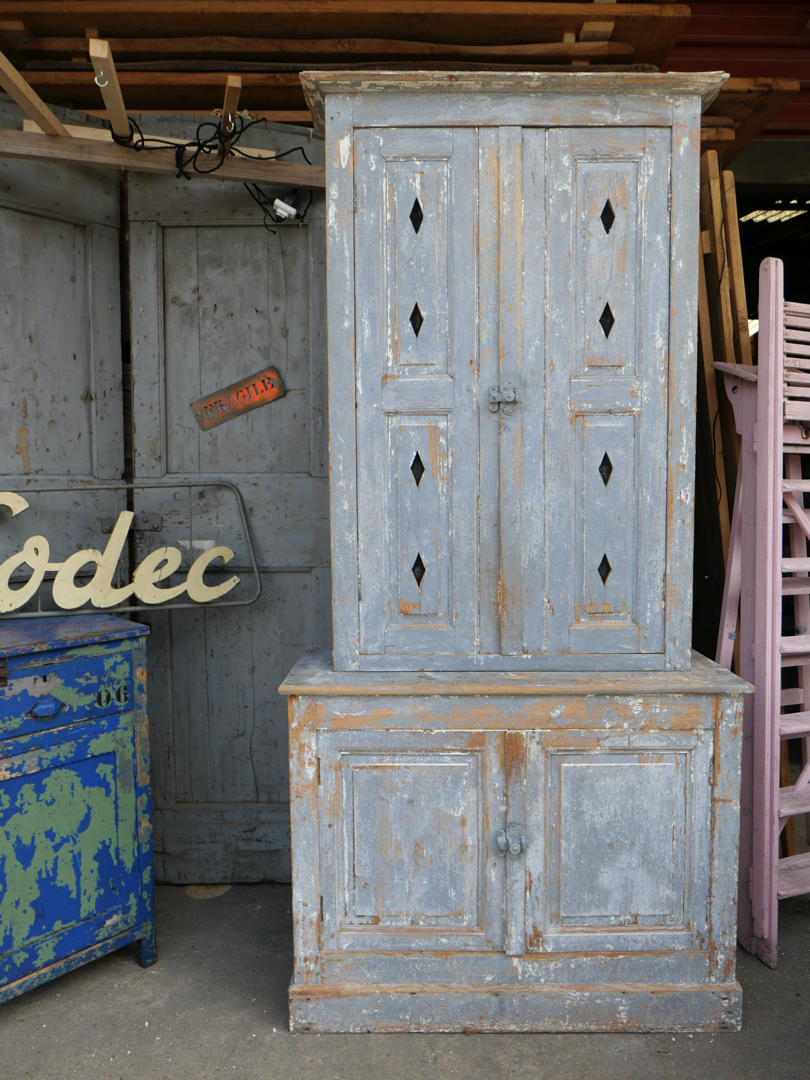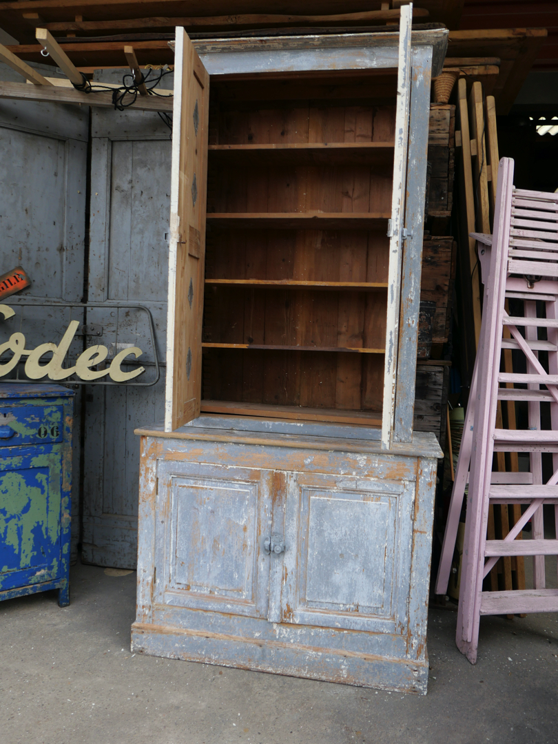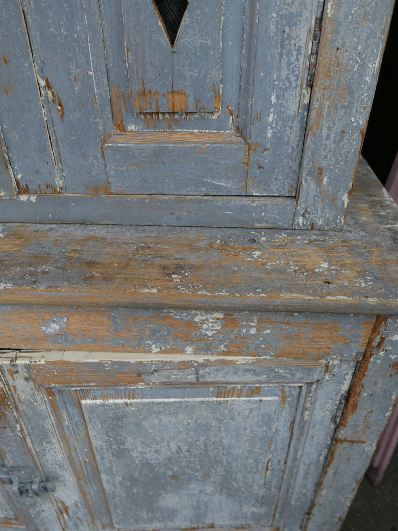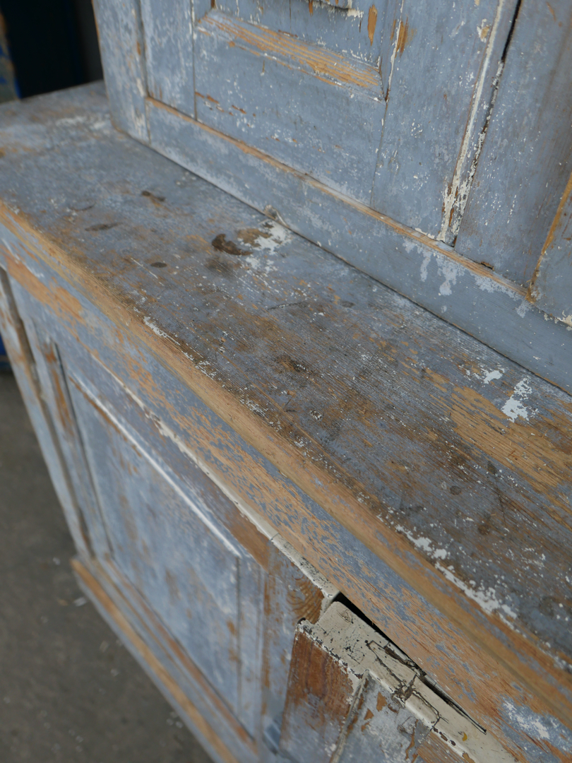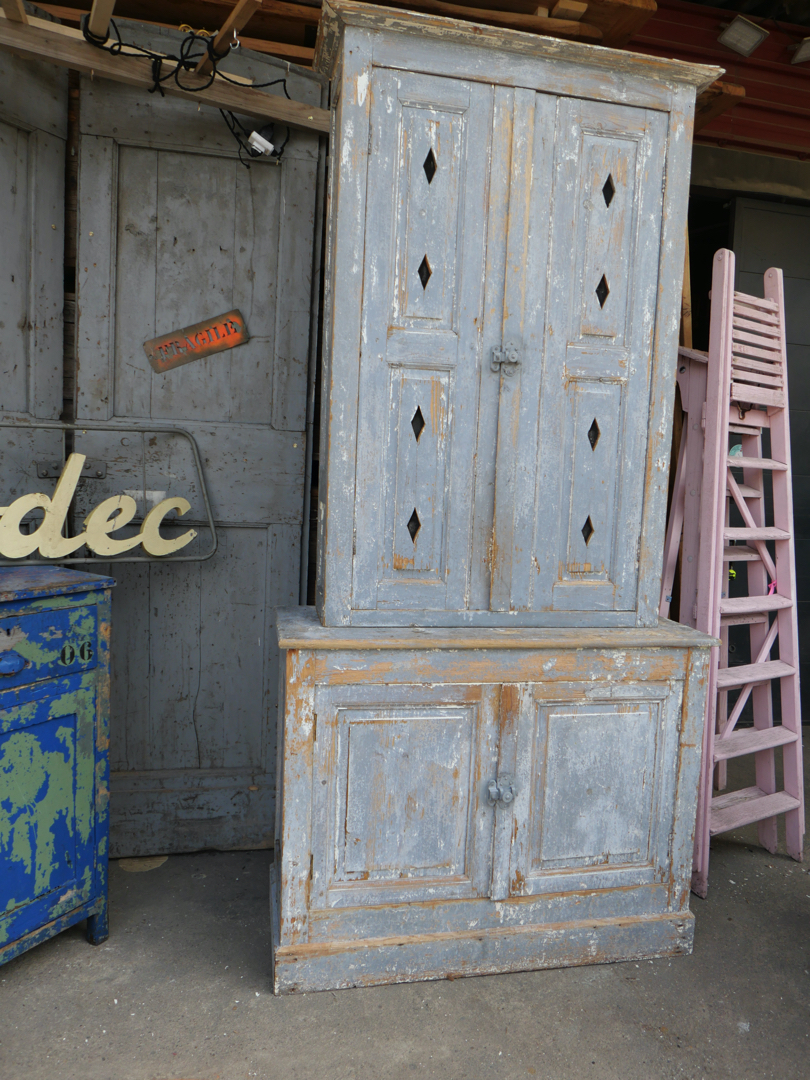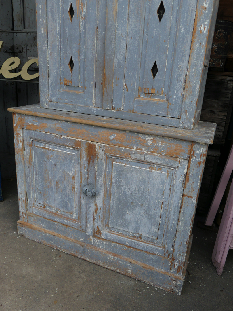 grand meuble en sapin deux corps patine grise dans son jus  bois patine d'origine partie haute  haut 159cm / largeur 100 /  profondeur 32 cm partie basse  haut 96cm / largeur 124 /  profondeur 47 cm Forfait livraison à votre domicile par transporteur
