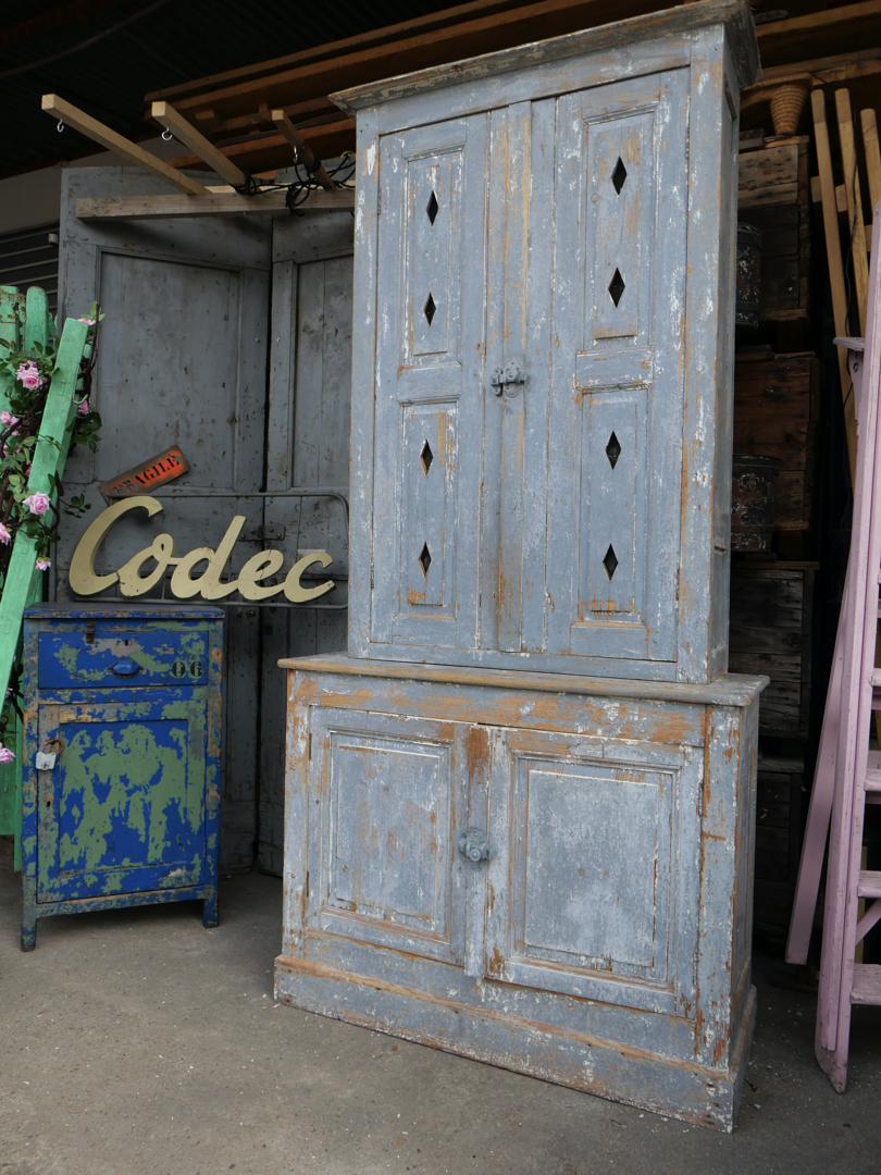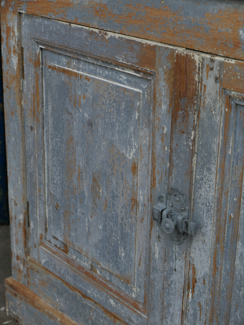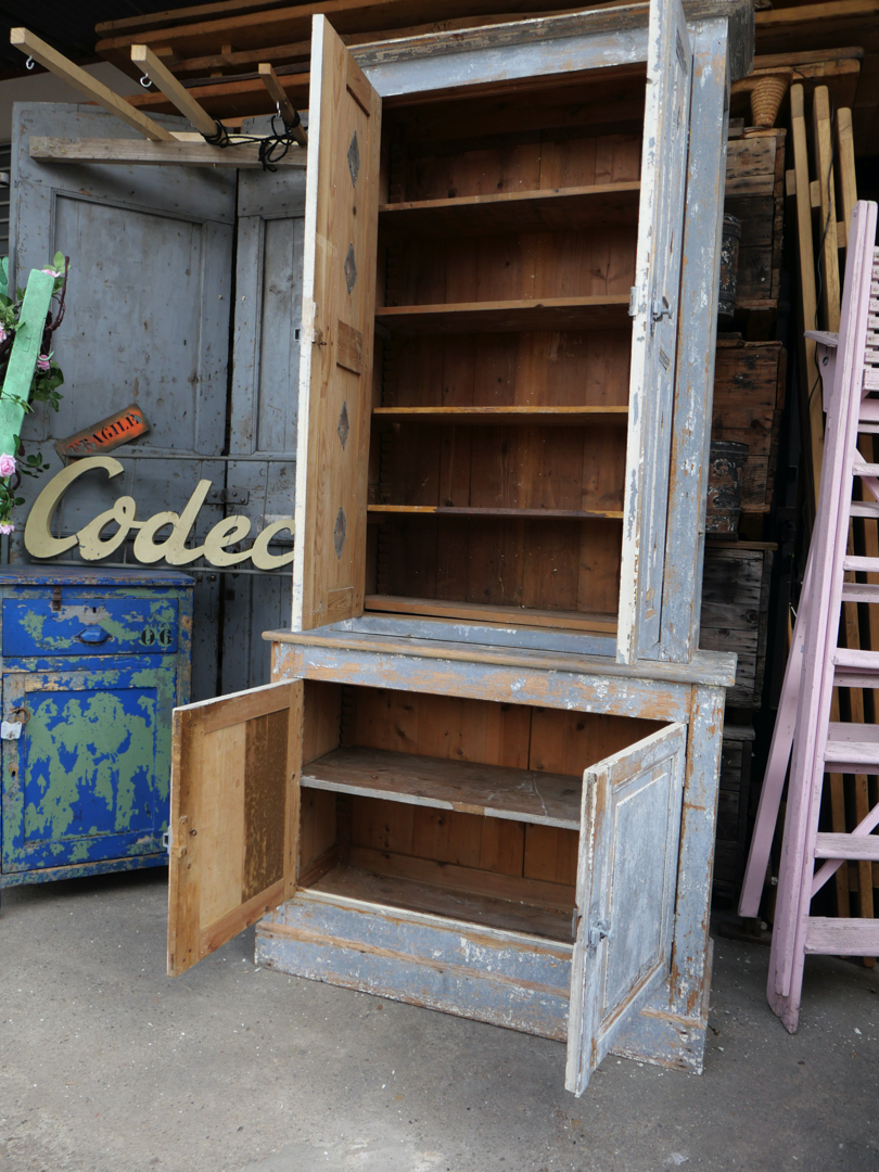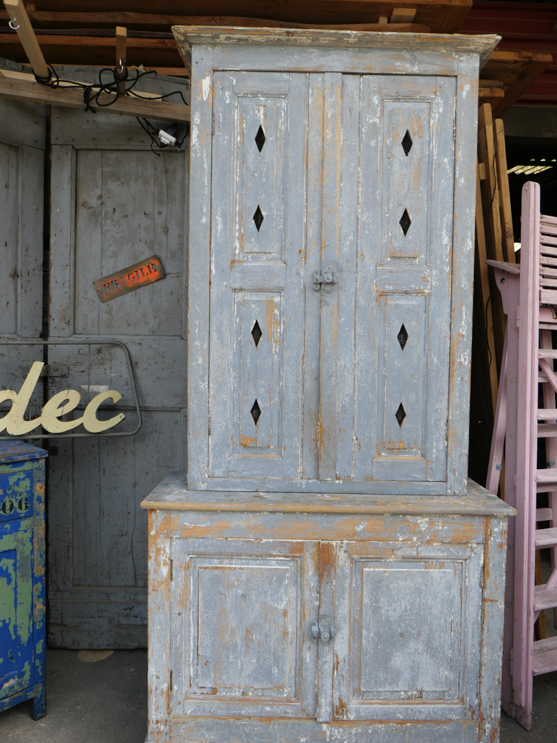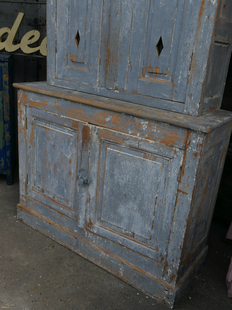 grand meuble en sapin deux corps patine grise dans son jus  bois patine d'origine partie haute  haut 159cm / largeur 100 /  profondeur 32 cm partie basse  haut 96cm / largeur 124 /  profondeur 47 cm Forfait livraison à votre domicile par transporteur