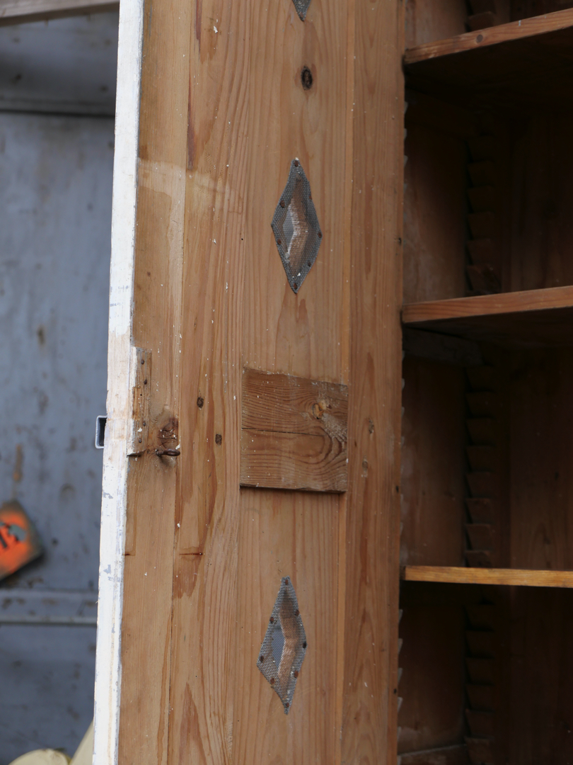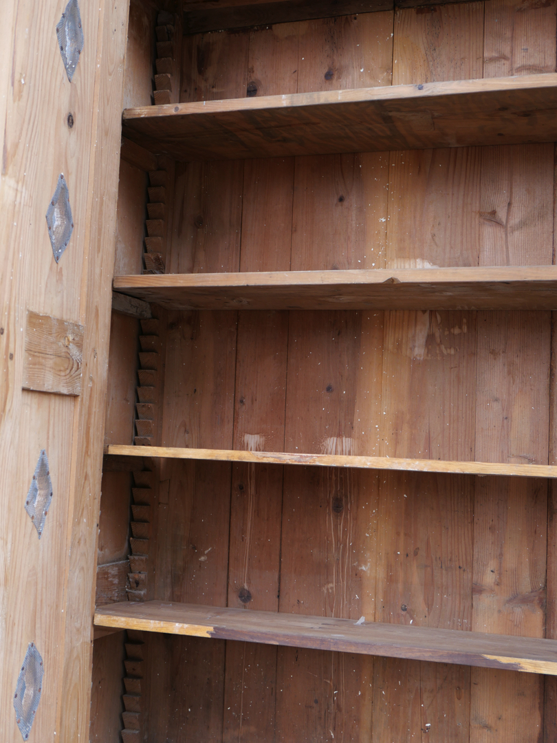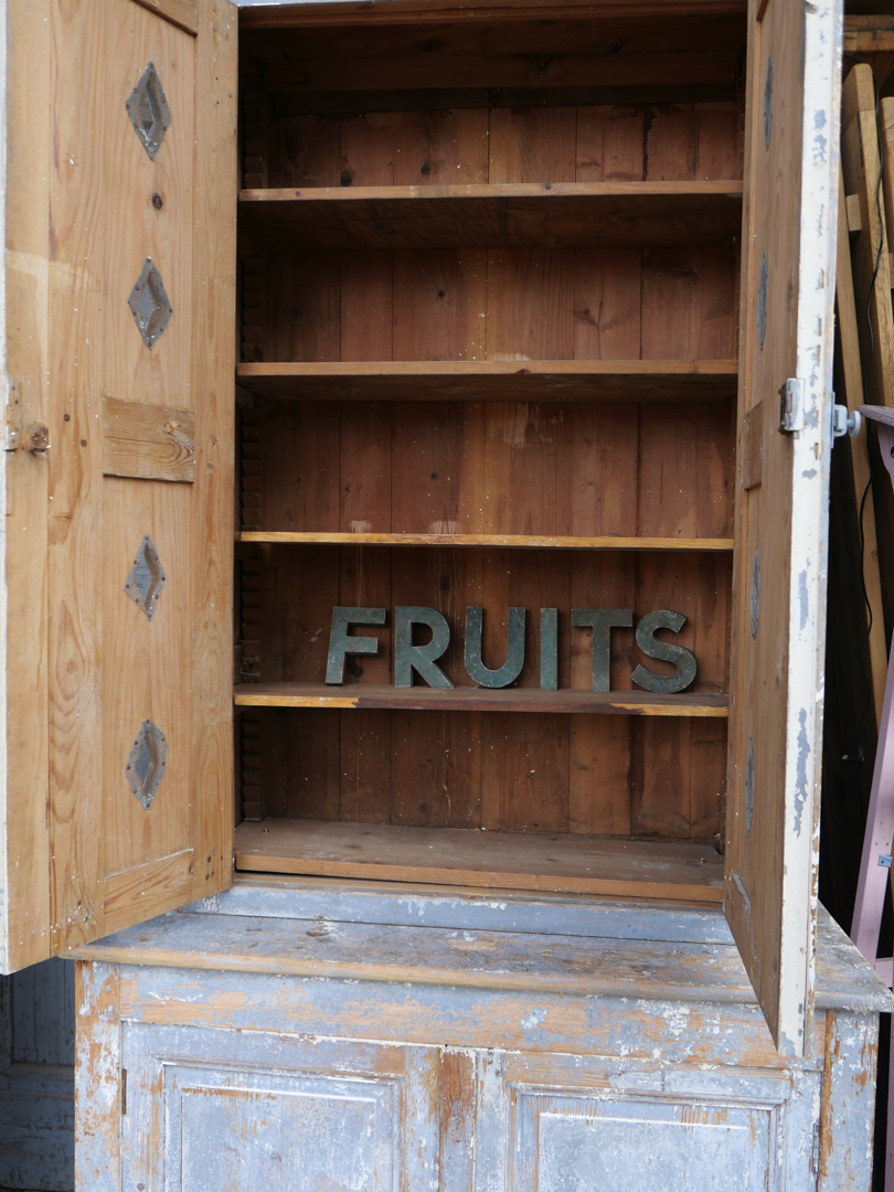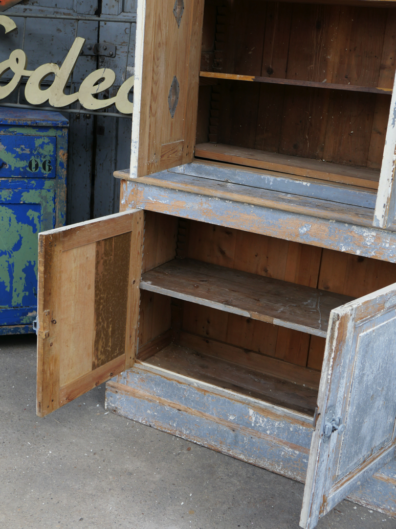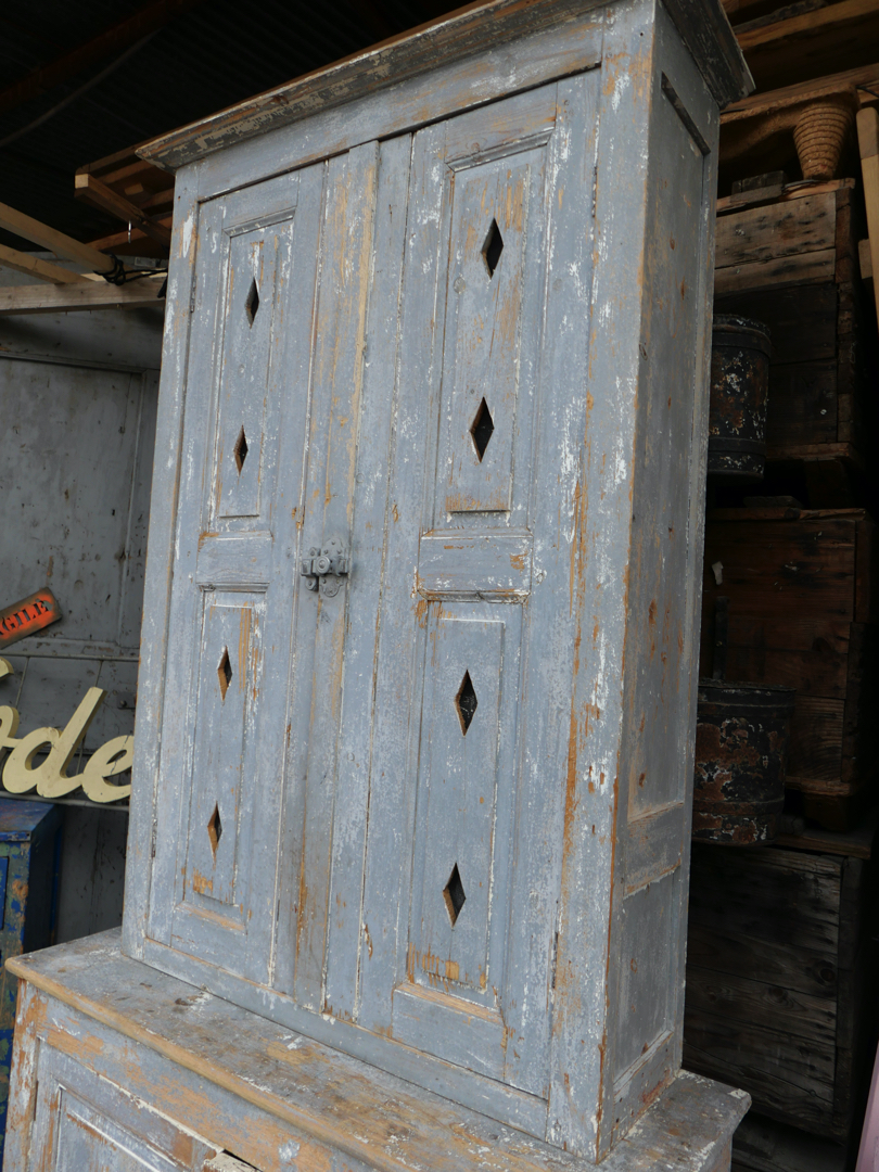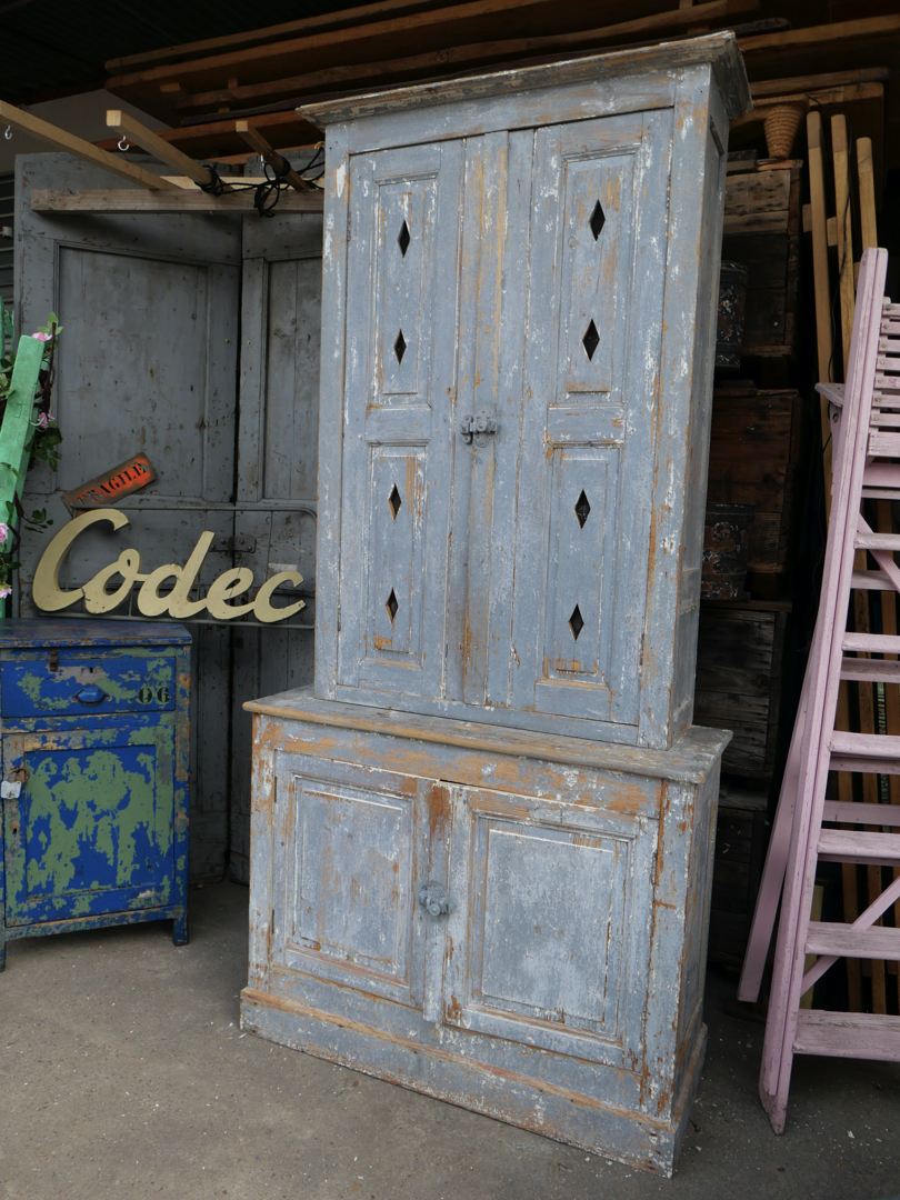 grand meuble en sapin deux corps patine grise dans son jus  bois patine d'origine partie haute  haut 159cm / largeur 100 /  profondeur 32 cm partie basse  haut 96cm / largeur 124 /  profondeur 47 cm Forfait livraison à votre domicile par transporteur