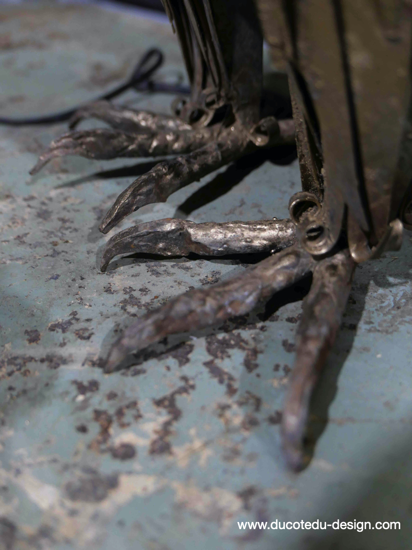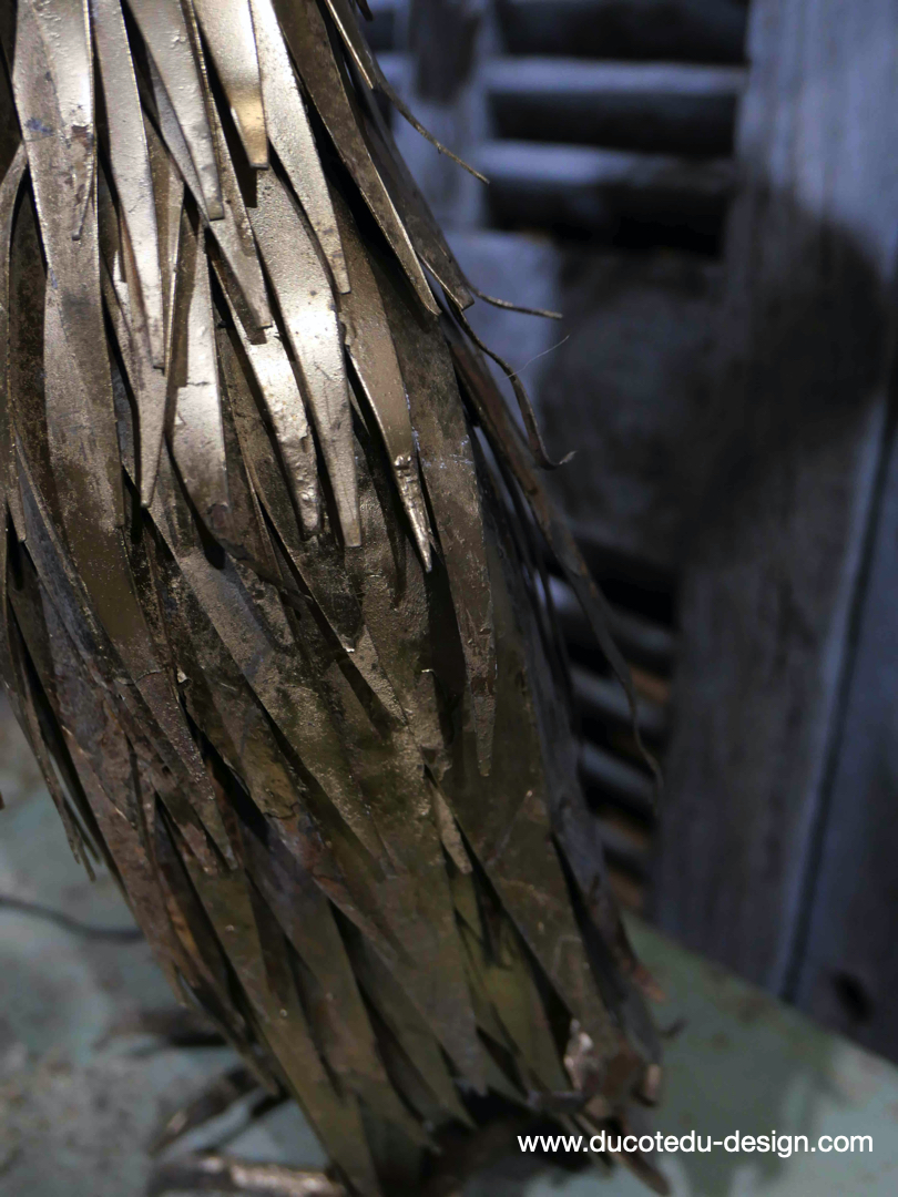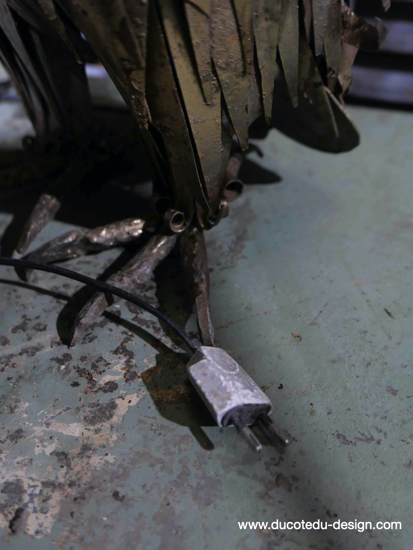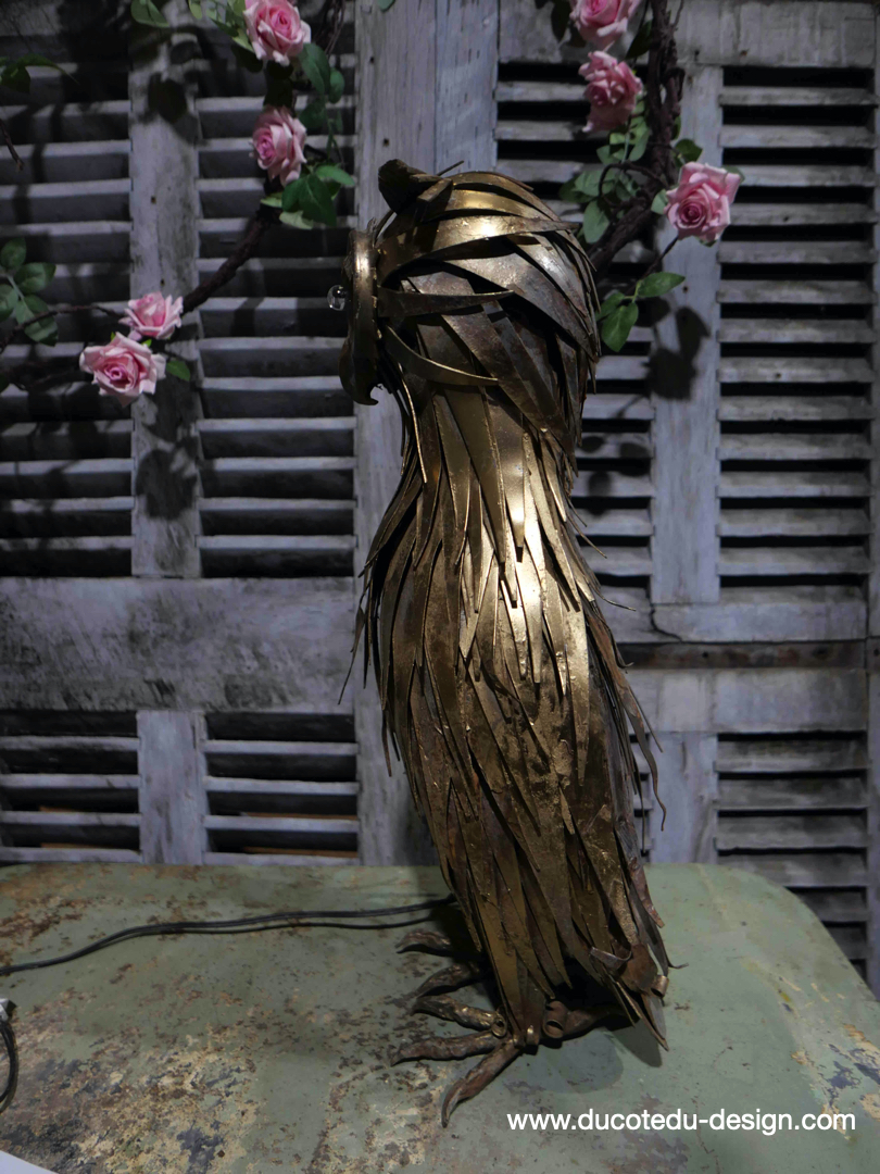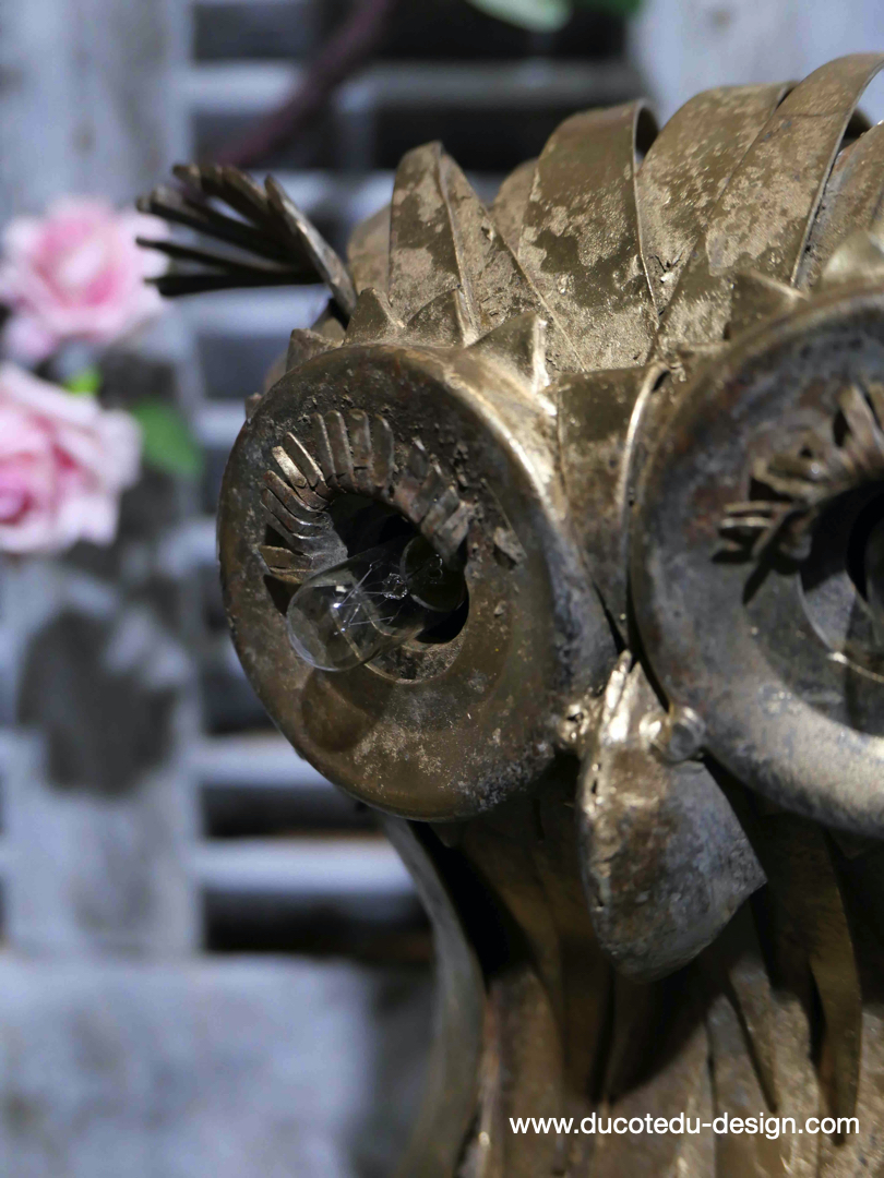 grande chouette en metal yeux lumineux etat d'origine dim 62 / 26 cm