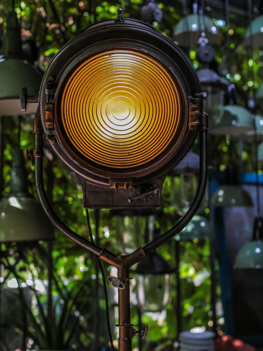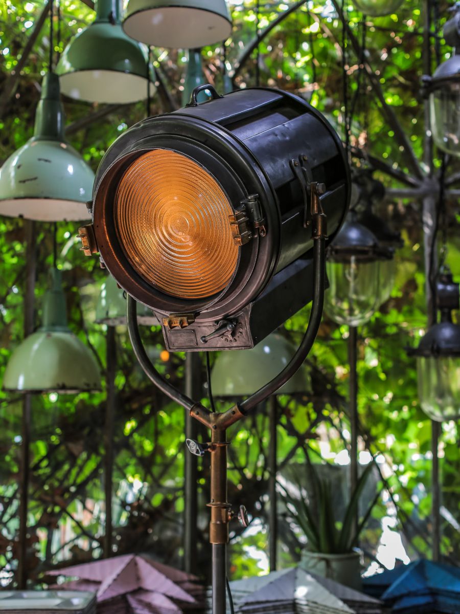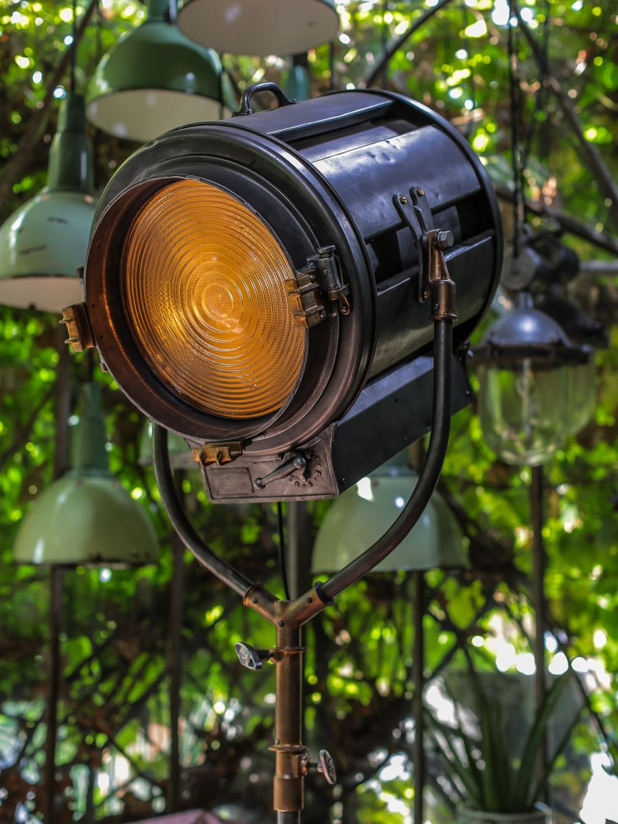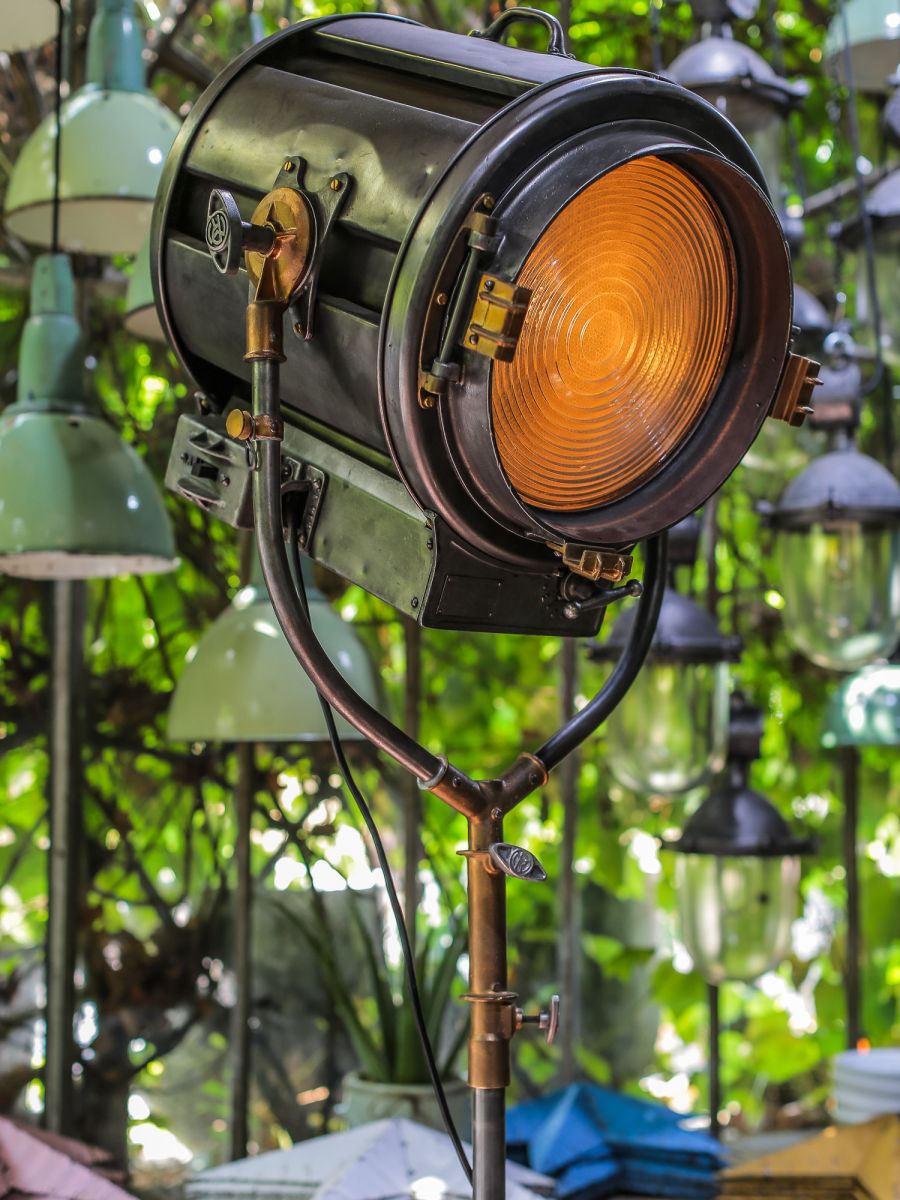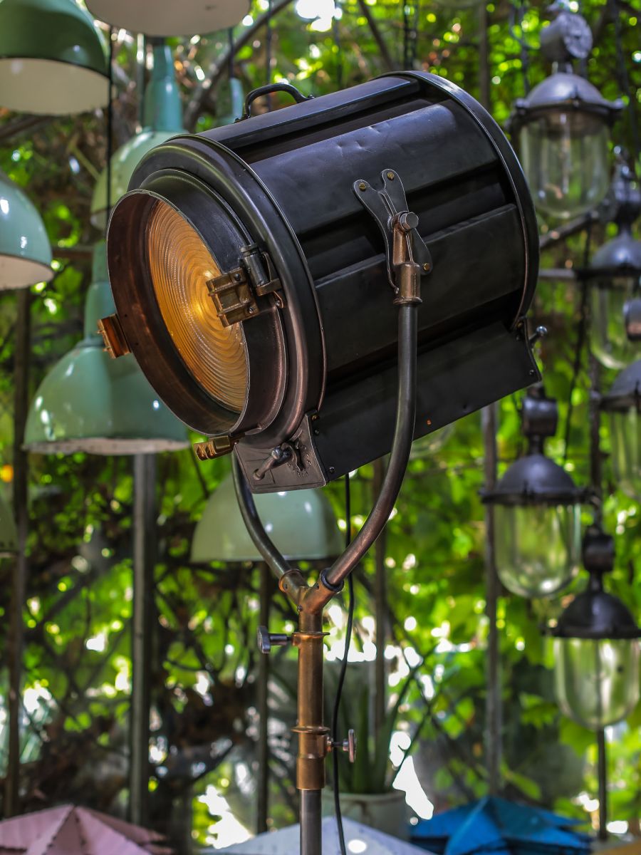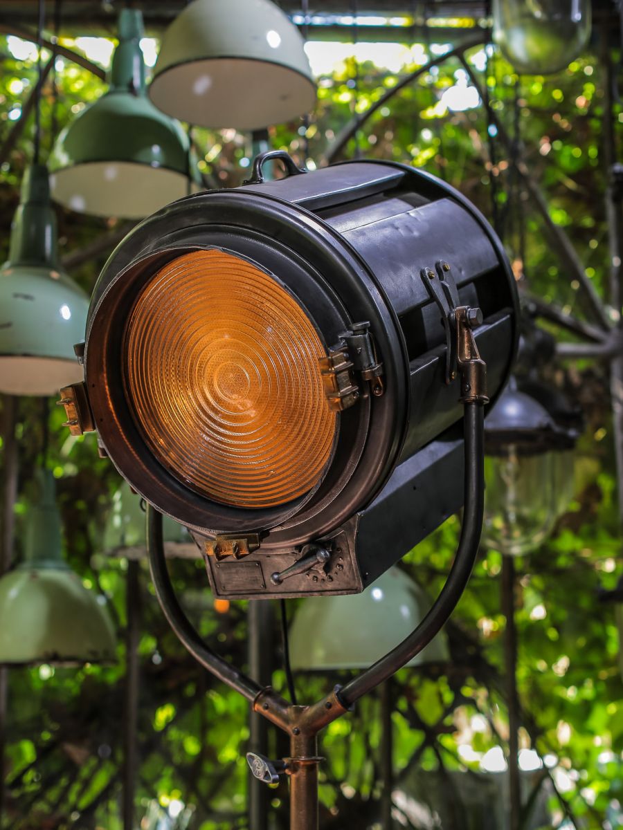 En parfait état de marche ce gros projecteur provenant des studios la victorine a Nice des années 30/40 a l'origine il a une puissance de 5000 watts electricite refaite muni d'une douille e27 standard possibilite de mettre l'ampoule de votre choix fonctionne sur 220 V. très stable grace à son grand pied d'origine a roulettes réglable jusqu'à une hauteur de 3 metres