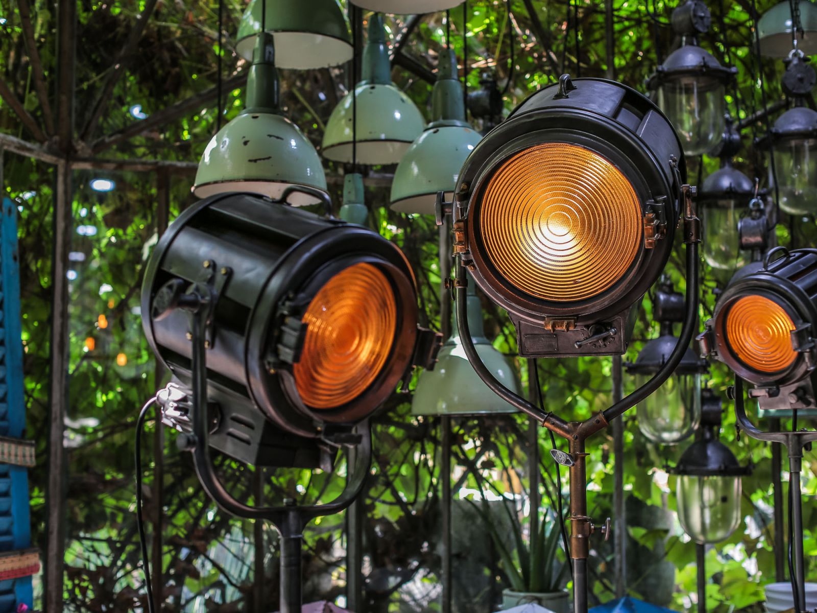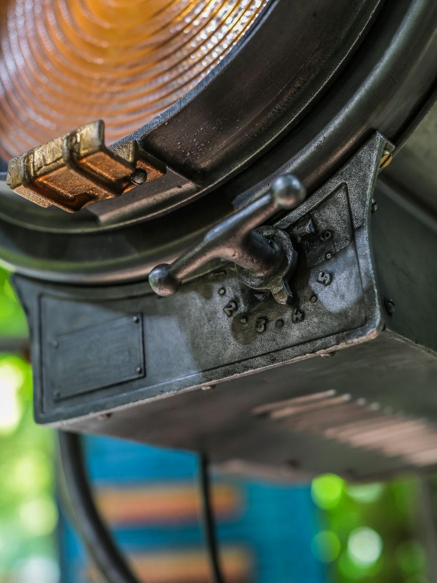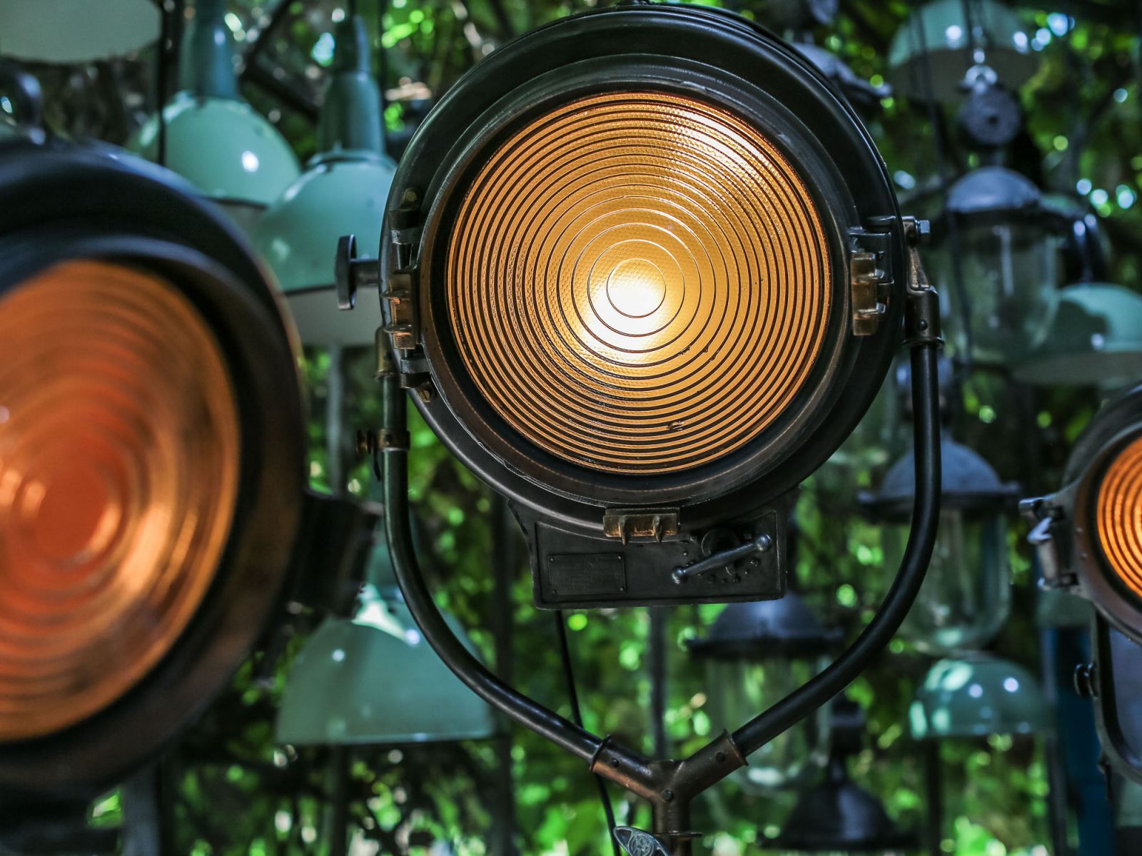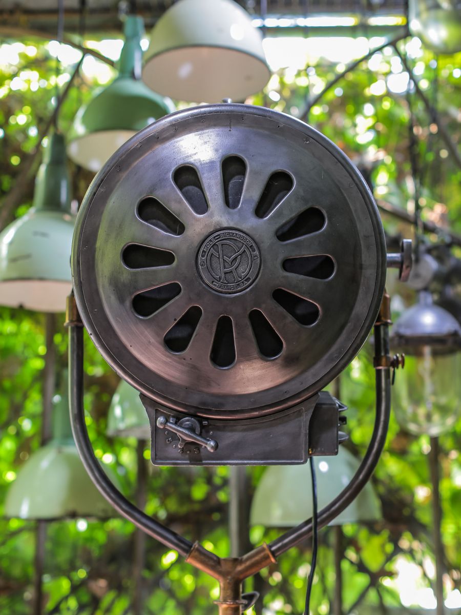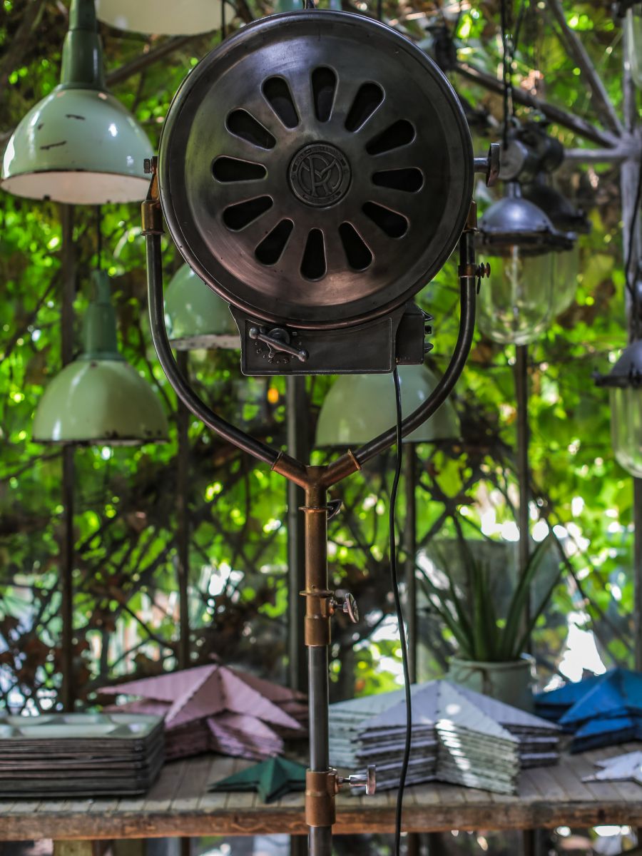 En parfait état de marche ce gros projecteur provenant des studios la victorine a Nice des années 30/40 a l'origine il a une puissance de 5000 watts electricite refaite muni d'une douille e27 standard possibilite de mettre l'ampoule de votre choix fonctionne sur 220 V. très stable grace à son grand pied d'origine a roulettes réglable jusqu'à une hauteur de 3 metres