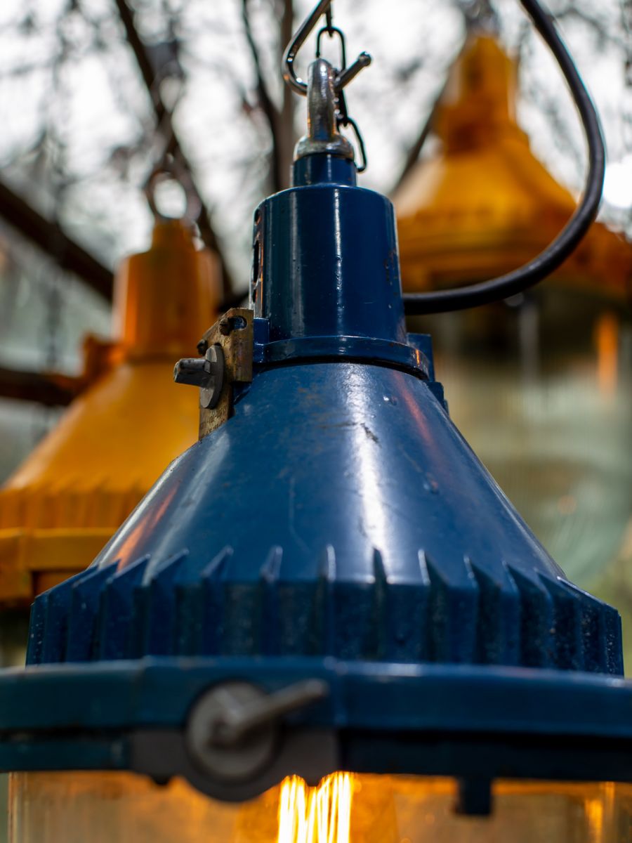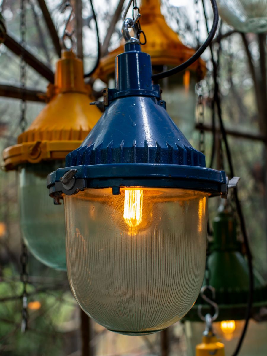 lampe industrielle Russe suspension verre haut 50, diam 32 cm