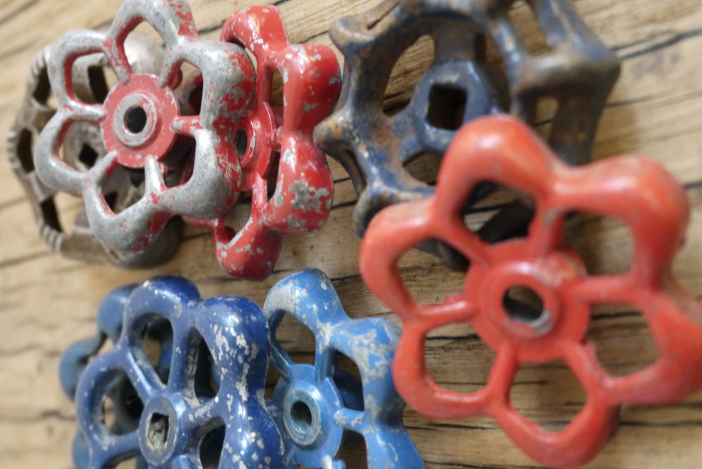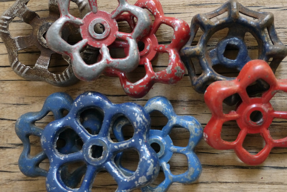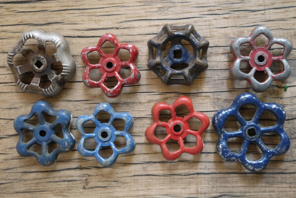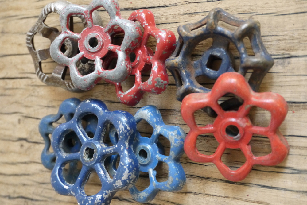Lot d’anciennes vannes d’usine, ideal en bouton de tiroir indus