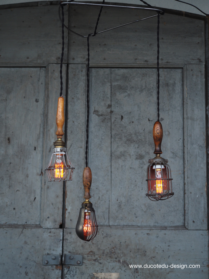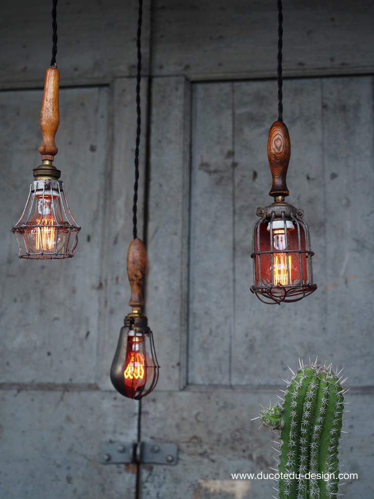 lustre de 3 baladeuse industrielle des USA equipant les caves de new York