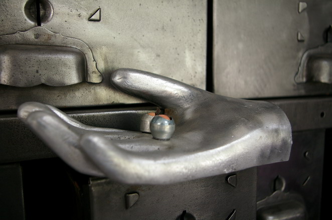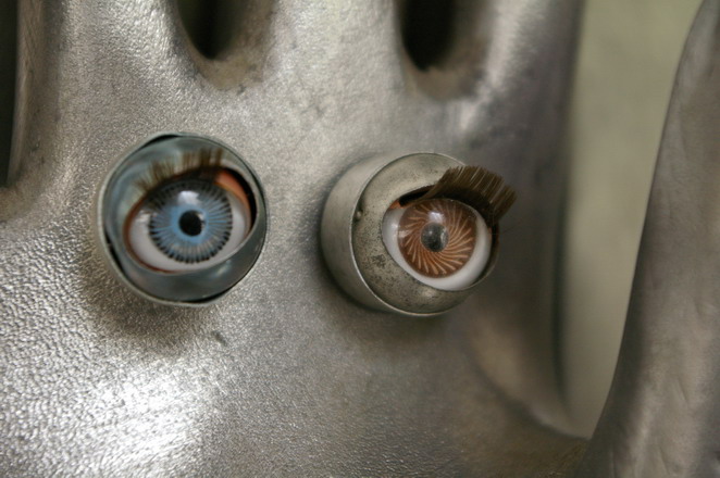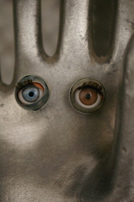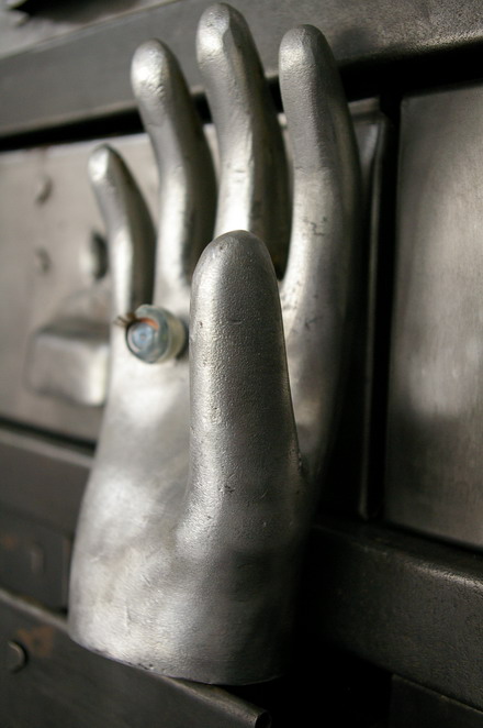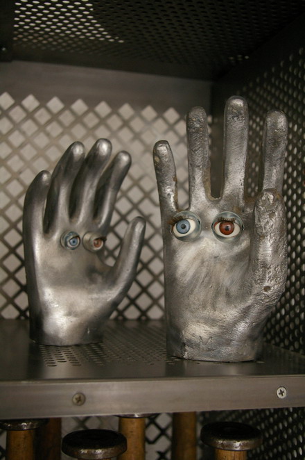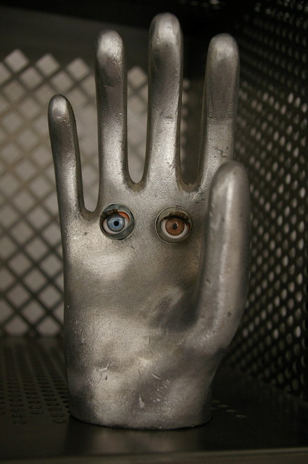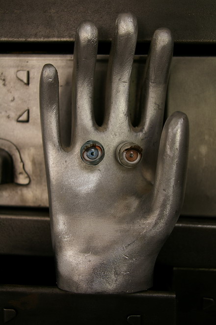 moule industriel pour la fabrication de gants revisité objet de curiosite main aluminum aux yeux de poupee main modele femme, 18 cm, yeux dormeurs