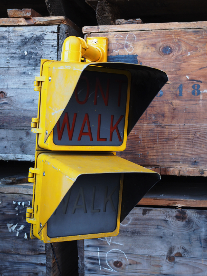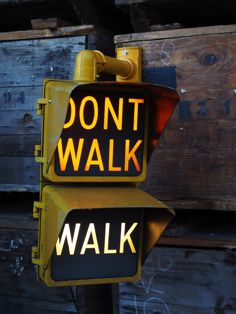 ◊ feu dont walk americain vintage USA jaune d'origine dans son jus eletricite en 220 v / ampoules 60 w de la ville de New York magnifique objet de déco peinture jaune d'origine fixations murale / casquettes Dimensions : H: 70 / L: 50 / P: 40 cm