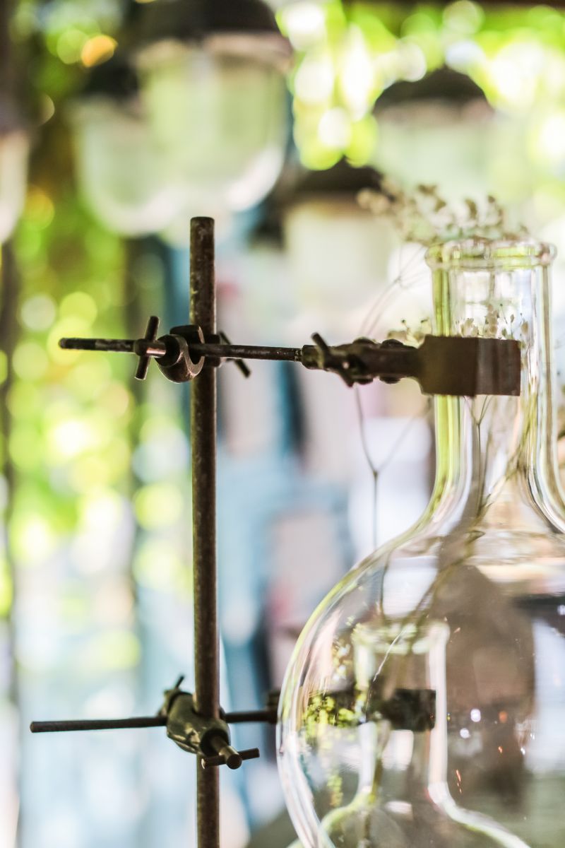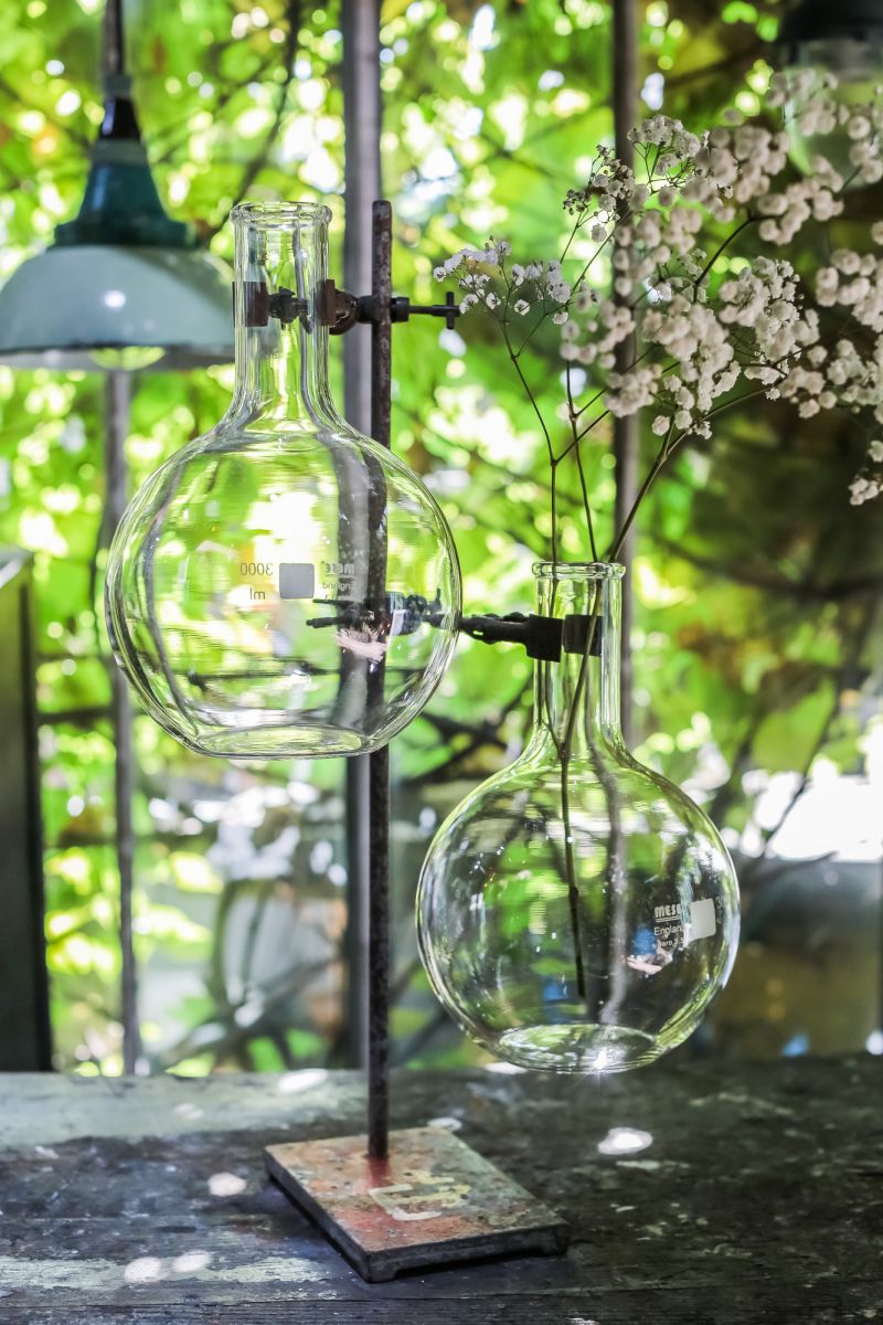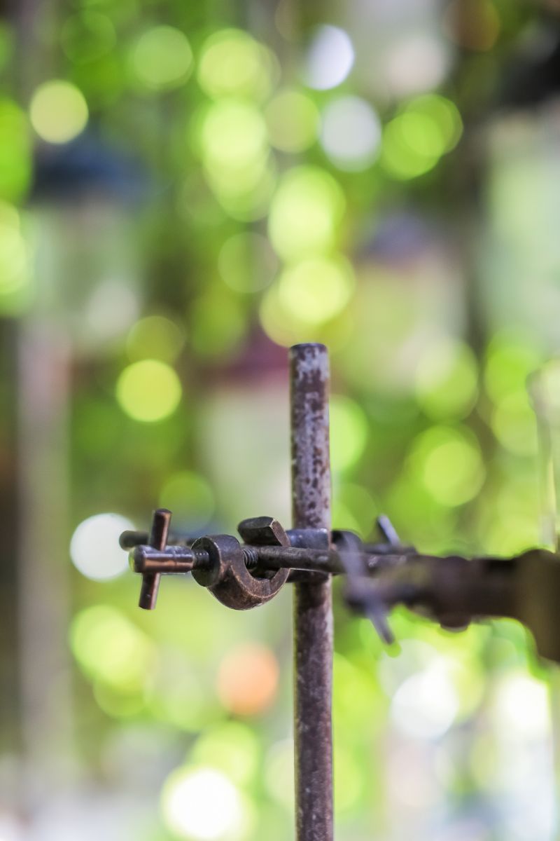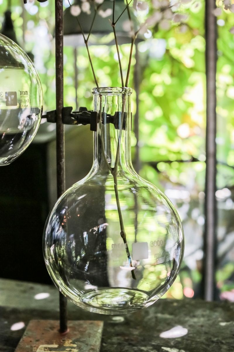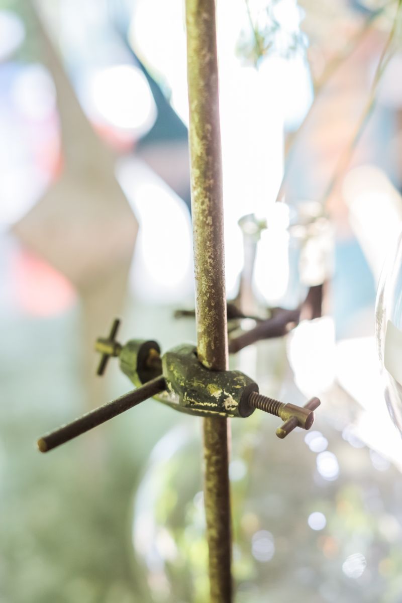 ancien pied de laboratoire double pince 2 grands verres 3 litres dans son jus