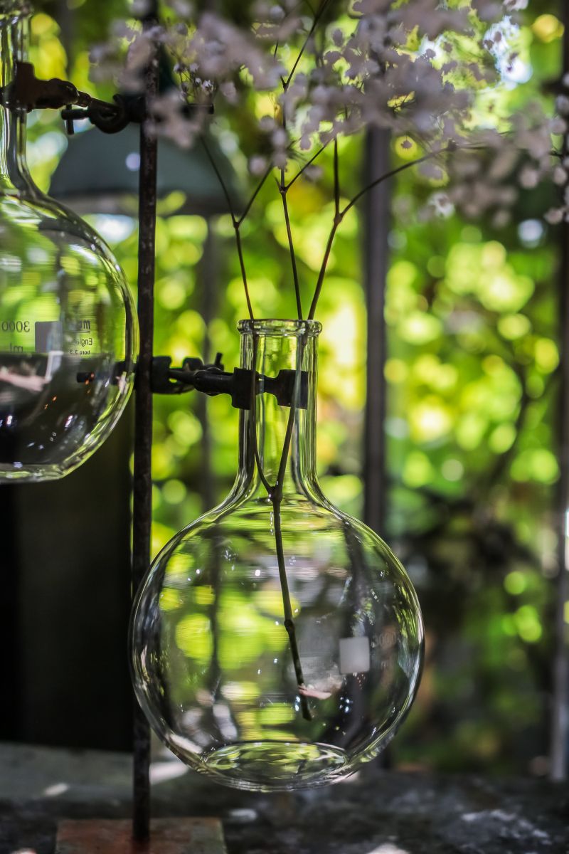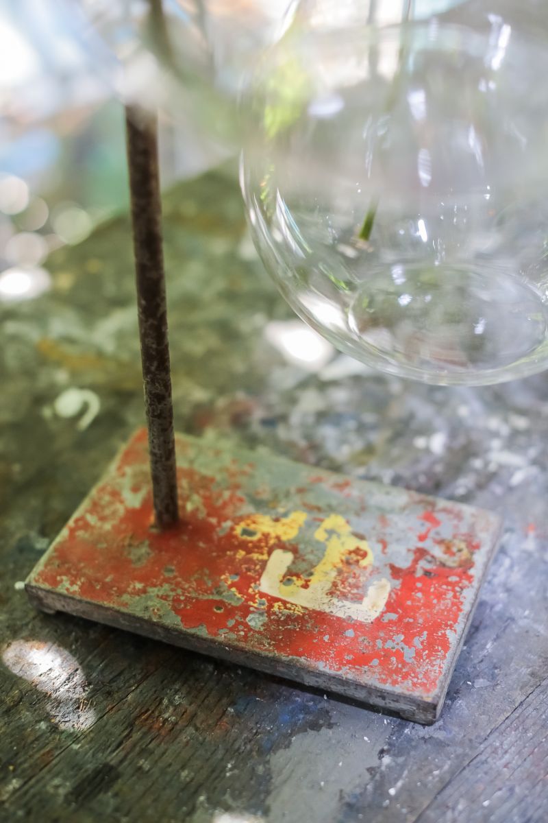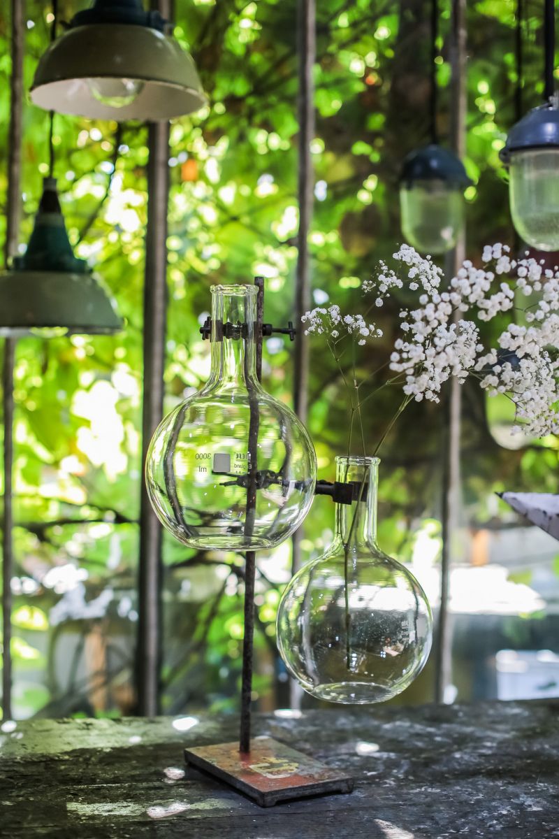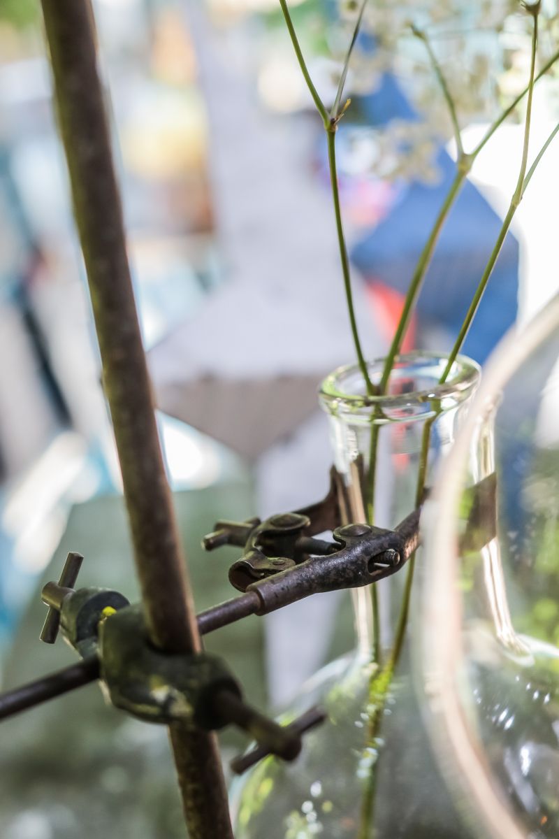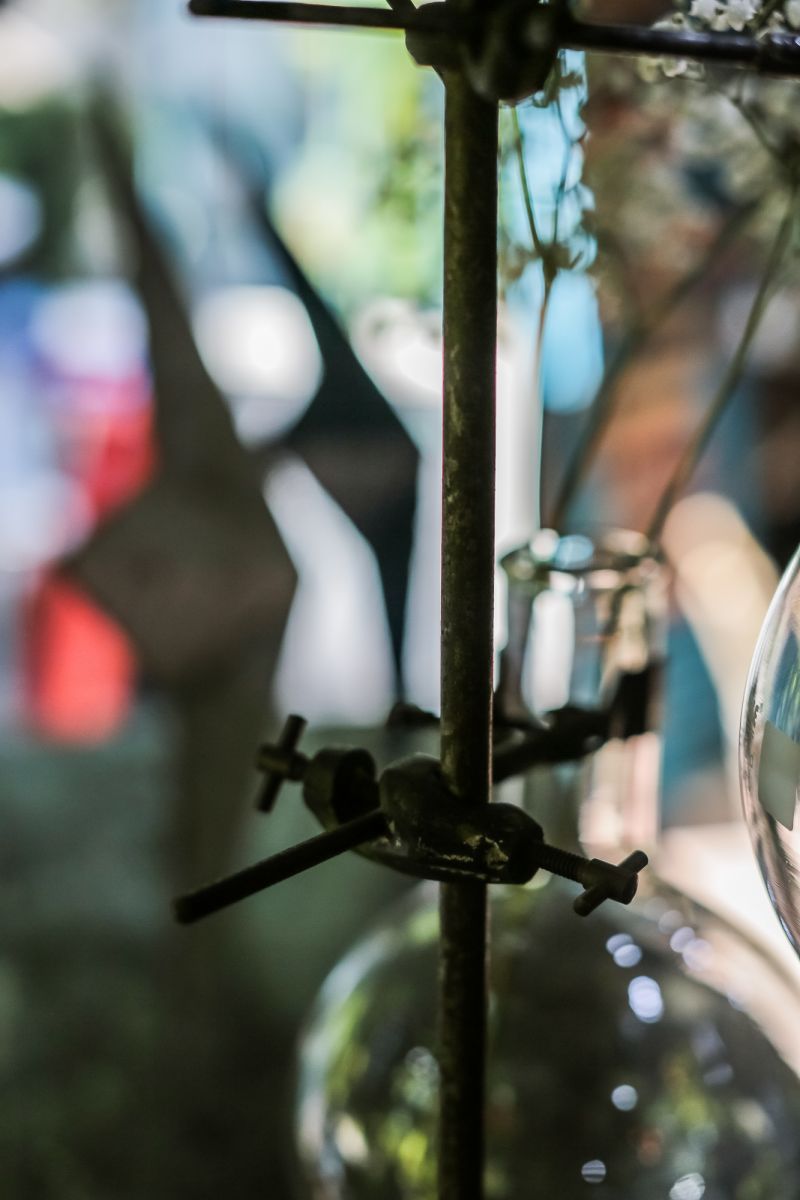 ancien pied de laboratoire double pince 2 grands verres 3 litres dans son jus