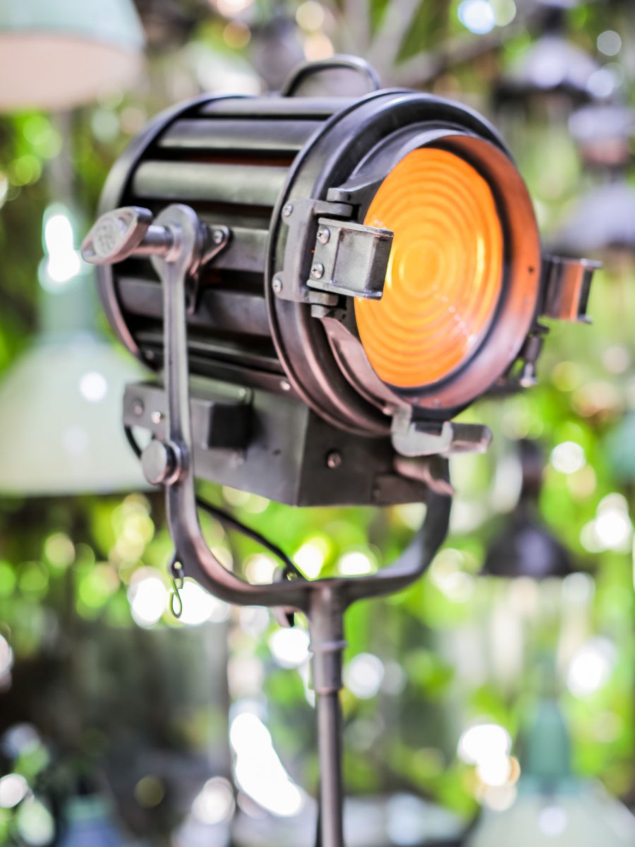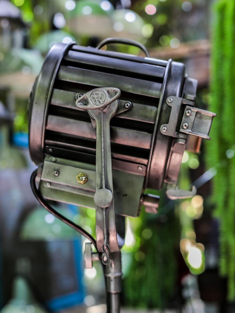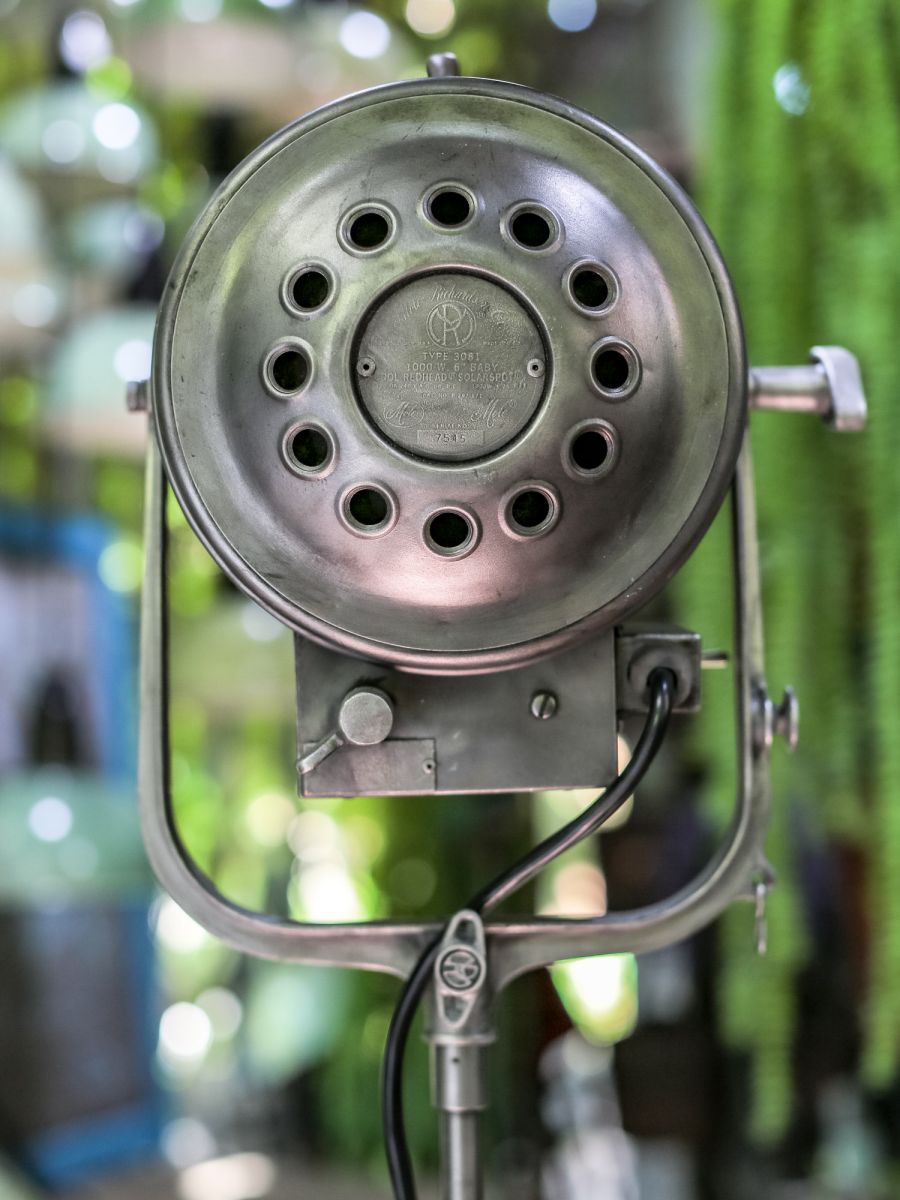 En parfait état de marche ce projecteur provenant d'Hollywood des années 50/60 muni d'une douille b22 standard équipé d'une lentille de fresnel possibilite de mettre une ampoule au choix fonctionne sur 220 V. très stable grace à son pied tripod réglable jusqu'à une hauteur de 2 metres