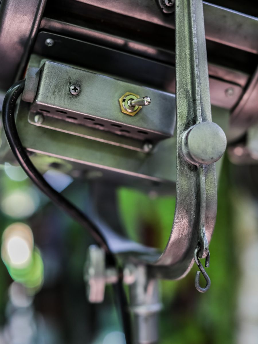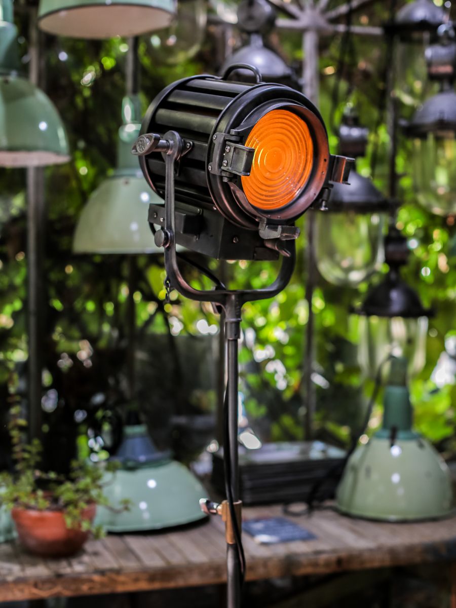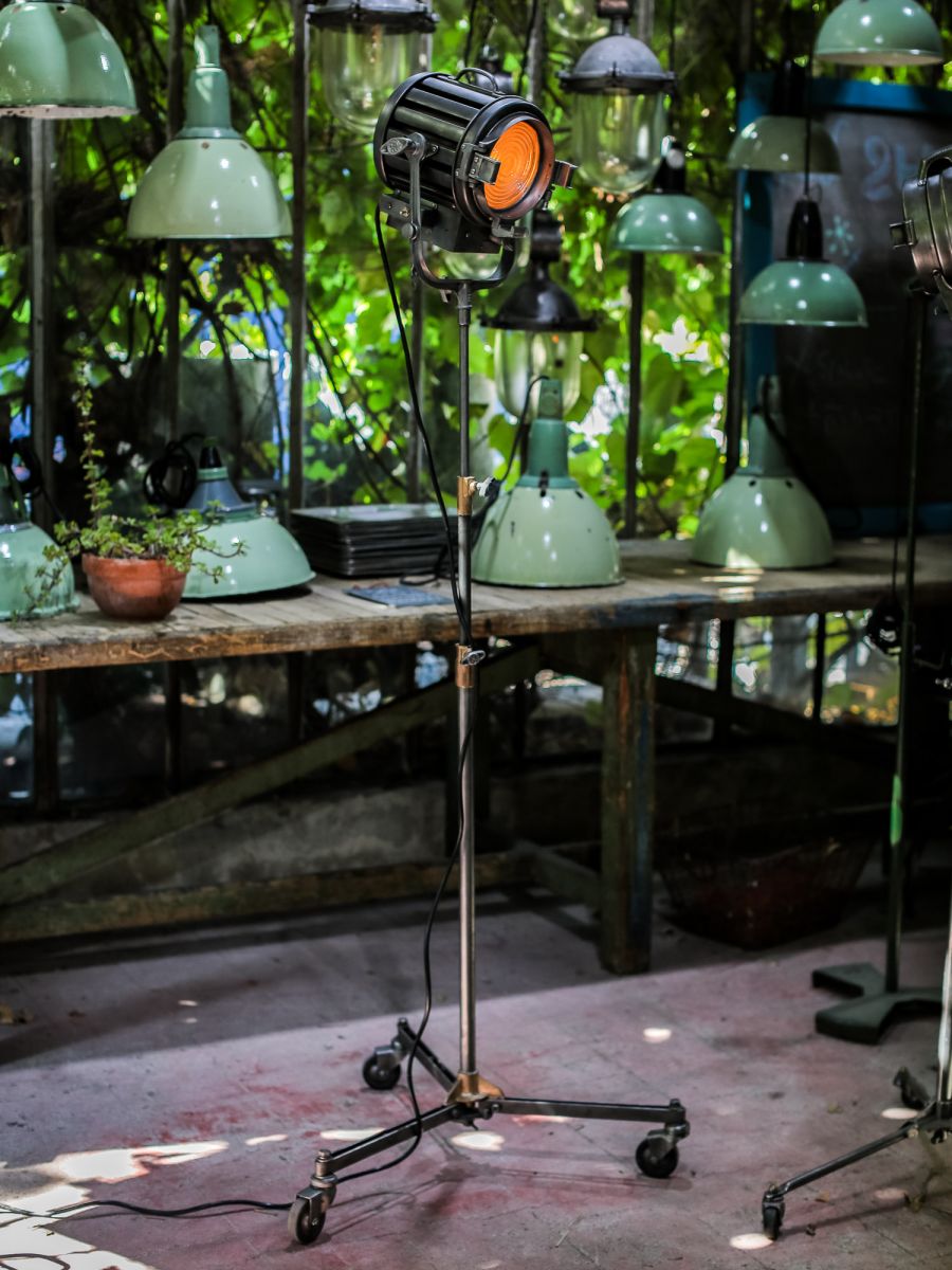 En parfait état de marche ce projecteur provenant d'Hollywood des années 50/60 muni d'une douille b22 standard équipé d'une lentille de fresnel possibilite de mettre une ampoule au choix fonctionne sur 220 V. très stable grace à son pied tripod réglable jusqu'à une hauteur de 2 metres