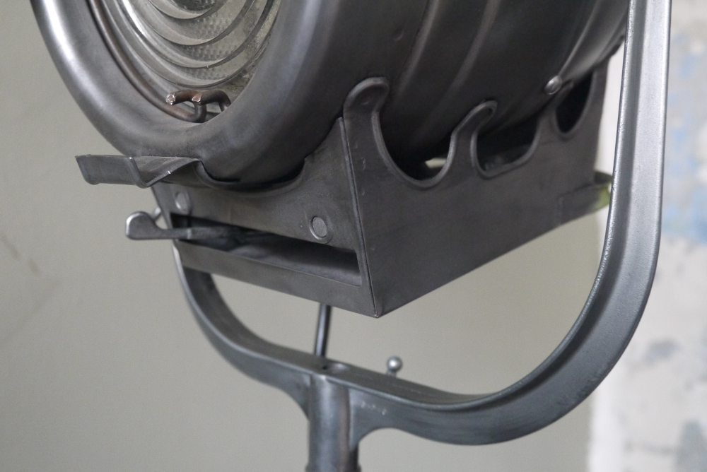 très stable grace à son gros piétement d'origine a roulettes réglable jusqu'à une hauteur de 3 mètres