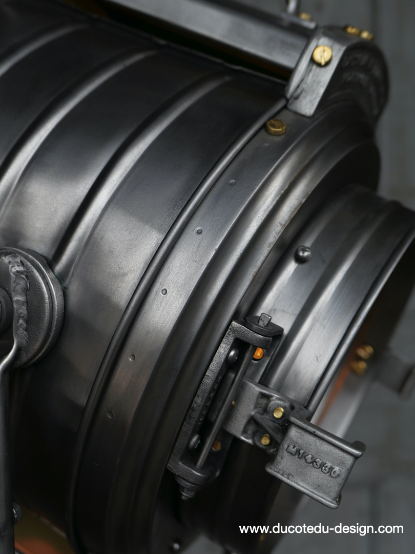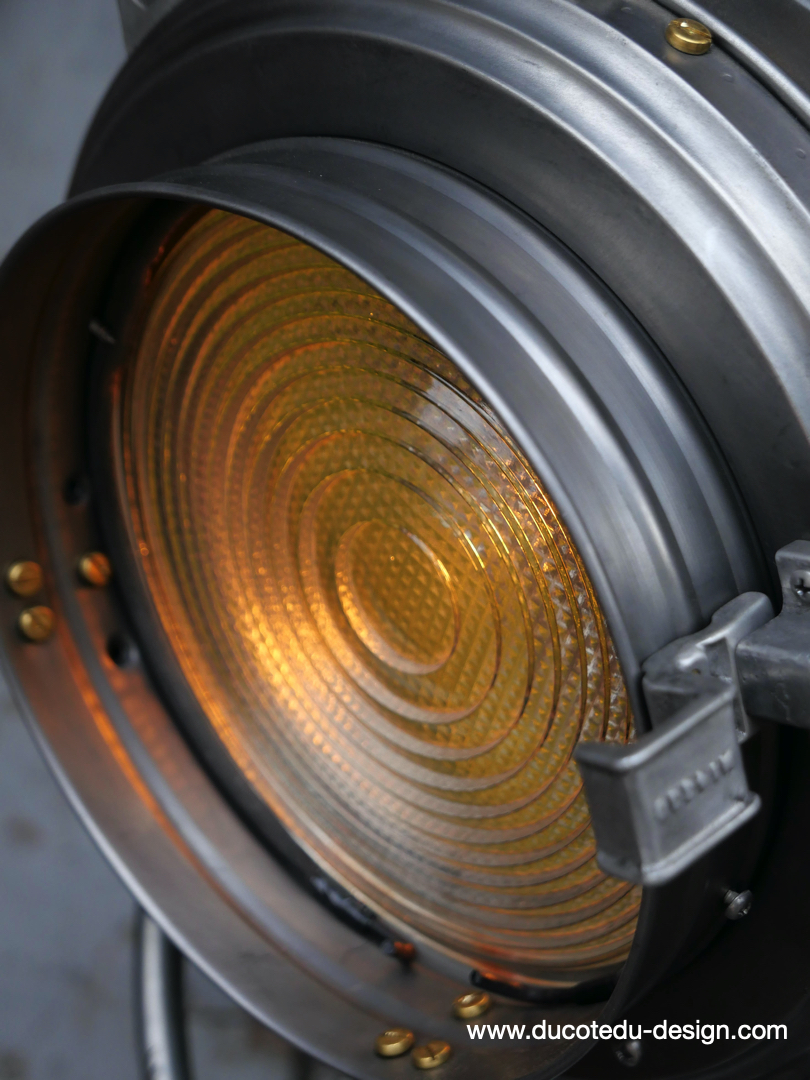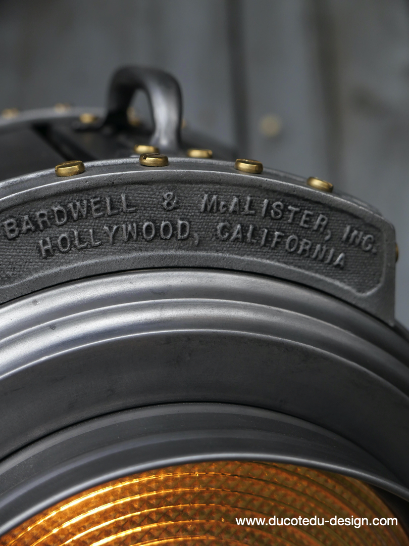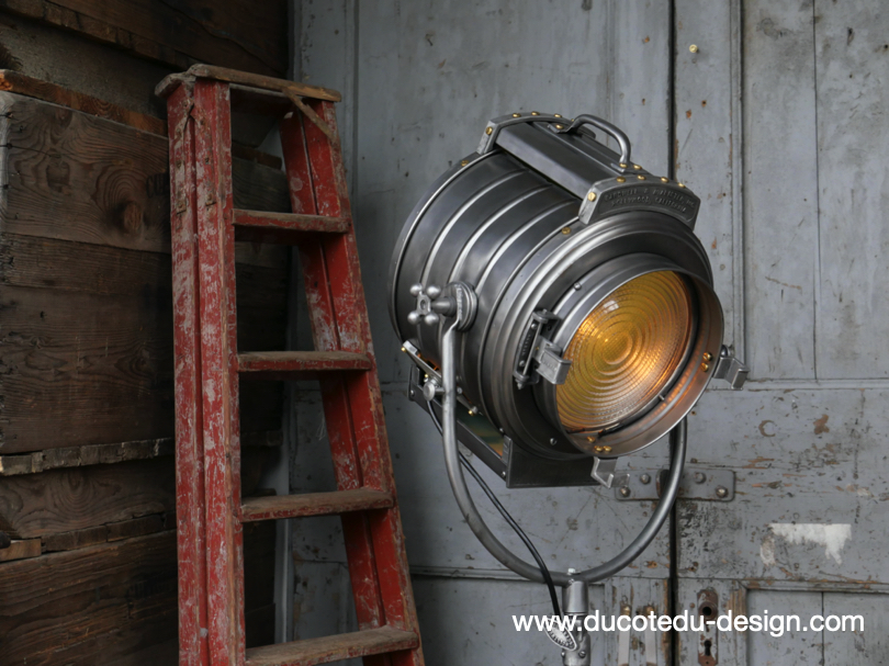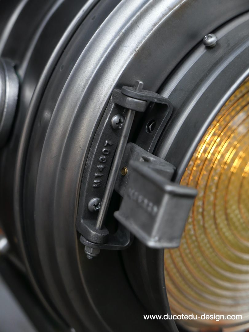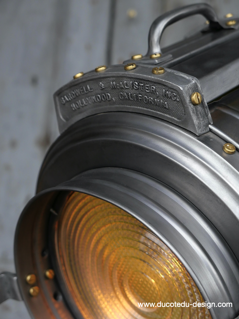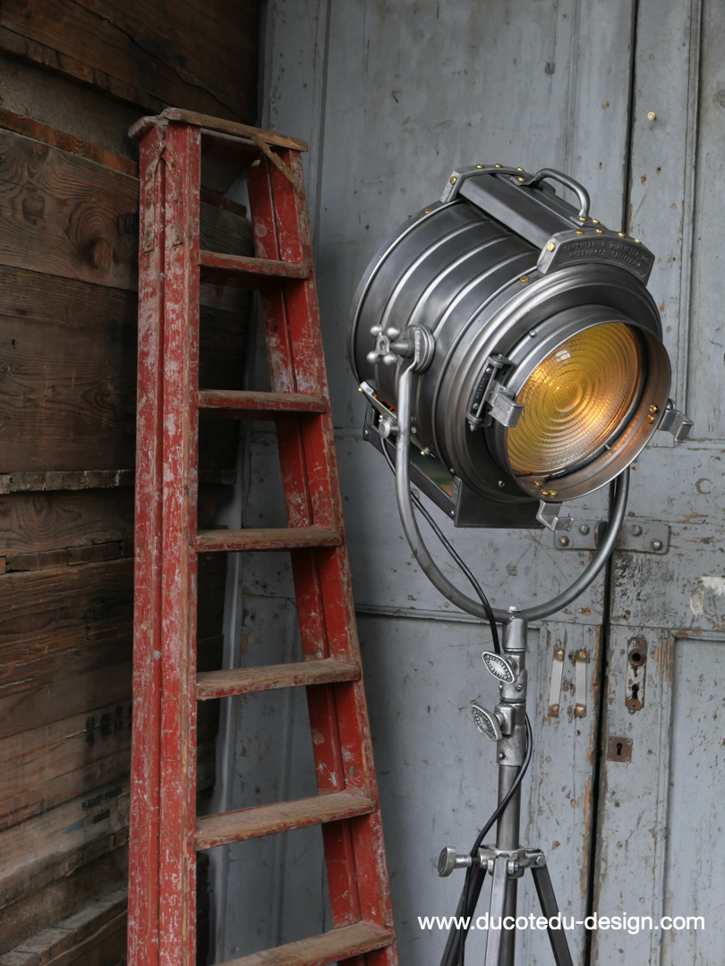 En parfait état de marche ce tres gros projecteur MCALISTER provient des anciens studios Hollywood entierement restauré dans notre atelier muni d'une douille e27 standard équipé d'une lentille de fresnel possibilite de mettre une ampoule de votre choix fonctionne sur 220 V. très stable grace à son gros piétement tripod réglable jusqu'à une hauteur de 2 mètres