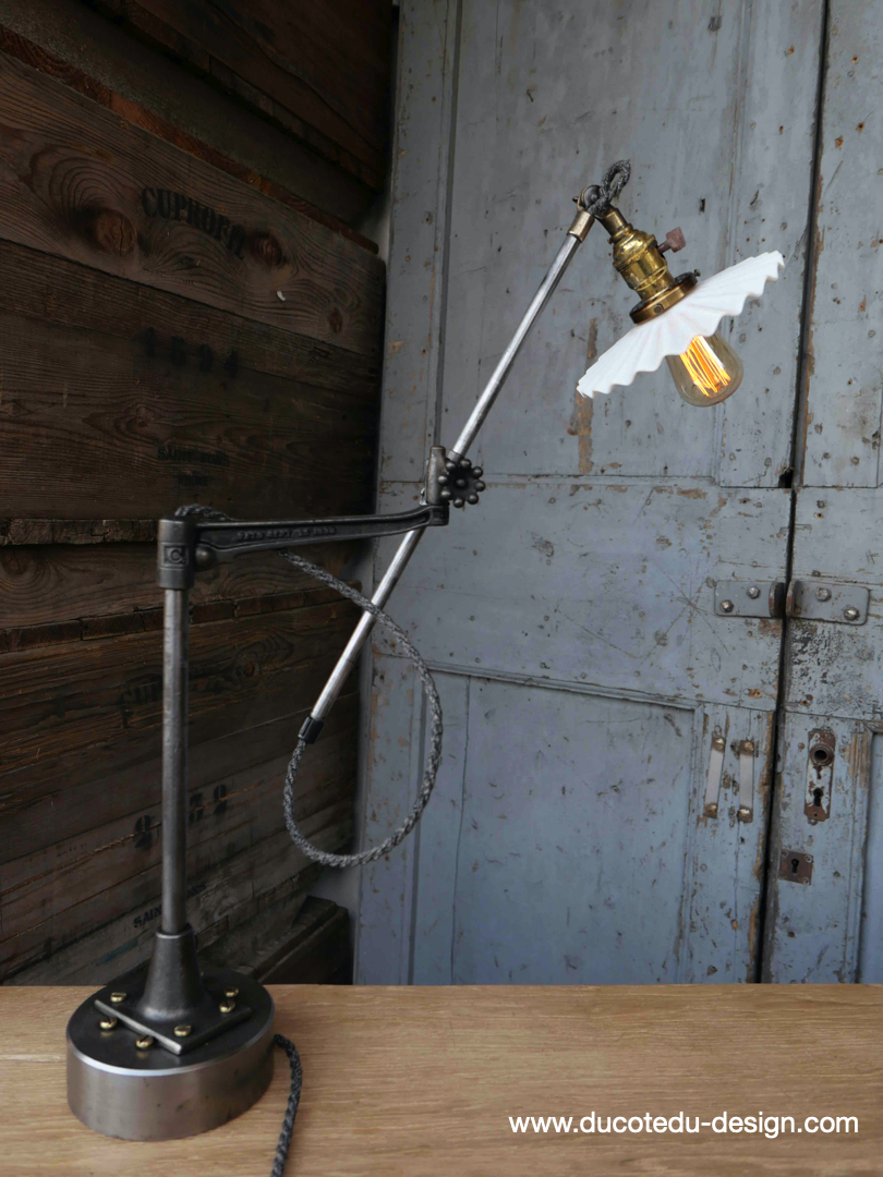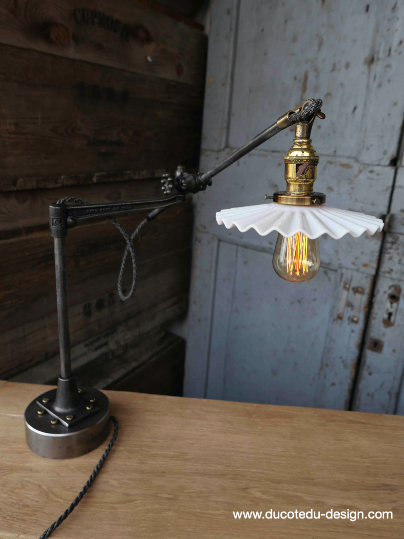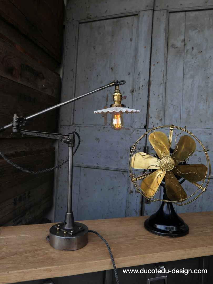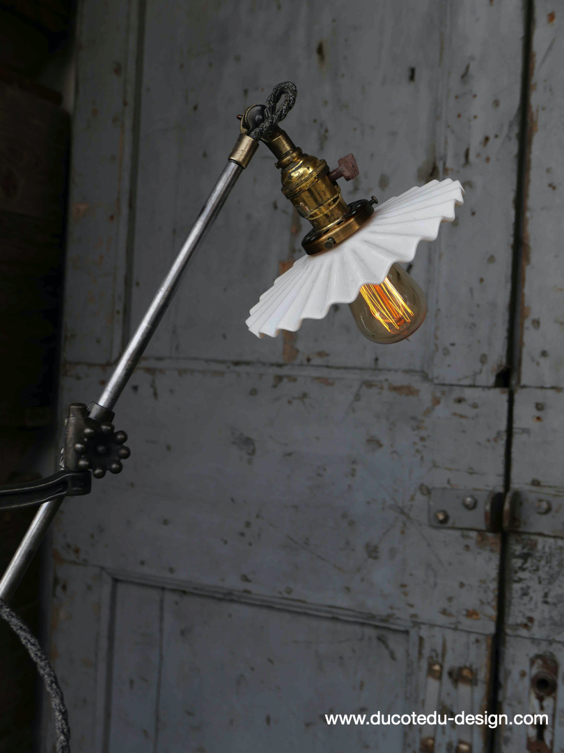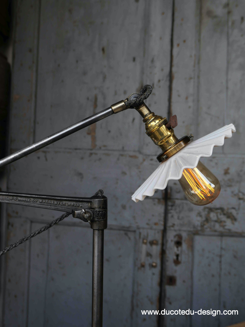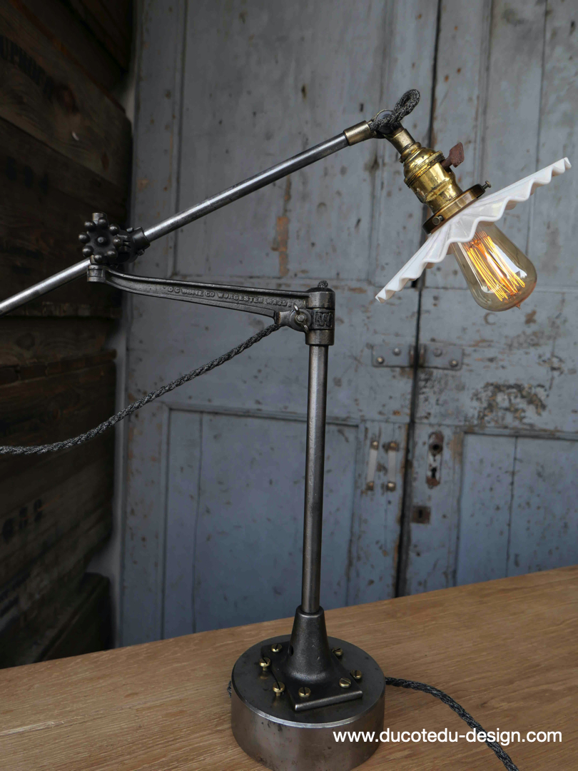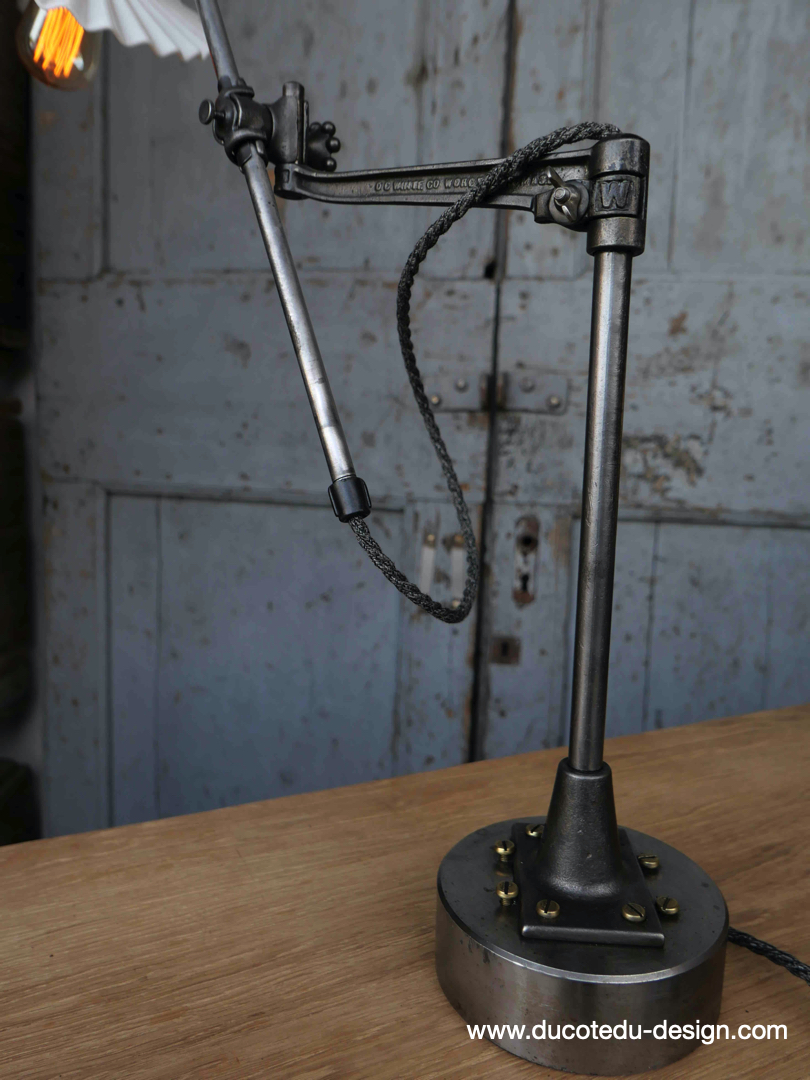 Lampe OC White Worcester Mass USA lampe a fixer, 2 bras articulés dans son jus tres beau modele de lampe industrielle piece rare et magnifique des années 20 electricité entierement revisée