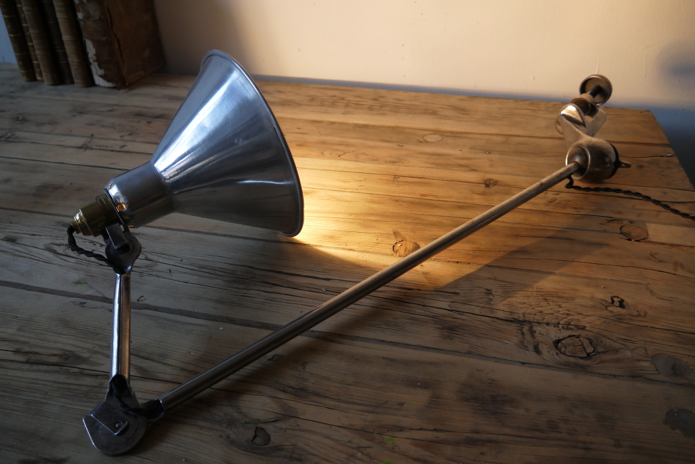 superbe ancienne lampe industrielle Gras abat jour dessinateur polie miroir
