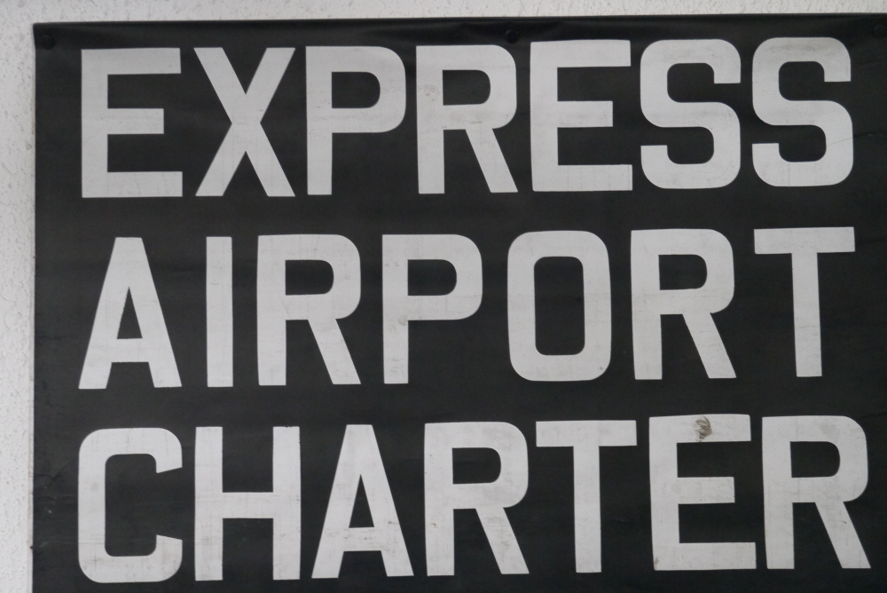 top deco ! tres grand kakemono rouge destination bus USA ligne floride annees 60/70 dans son jus