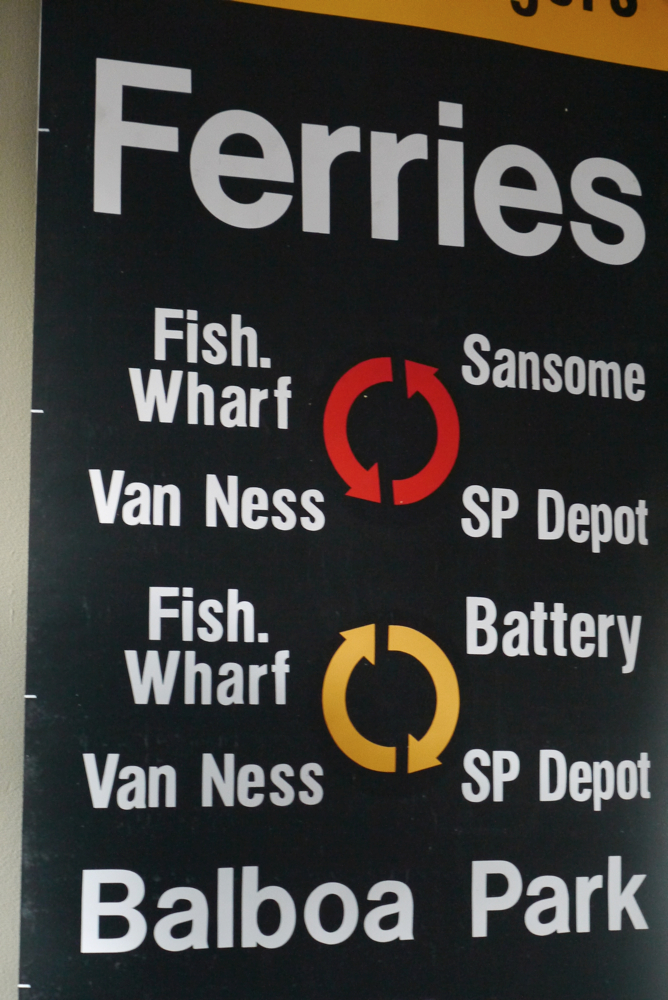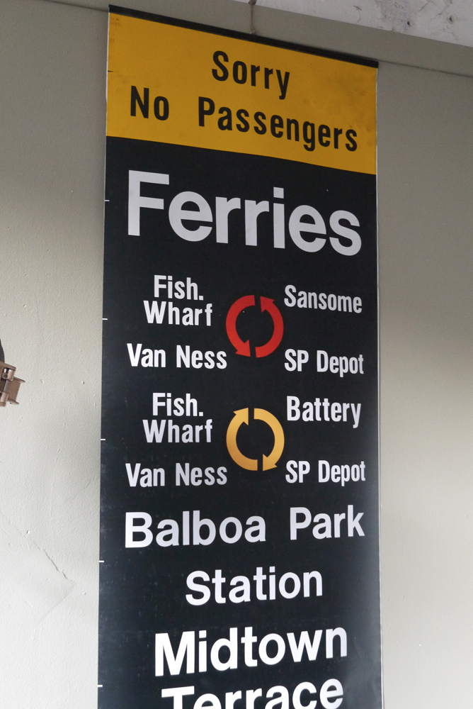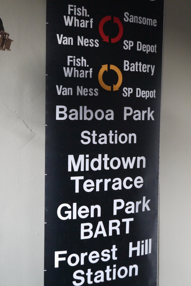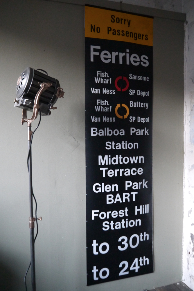 top deco ! tres grand kakemono rouge destination bus USA ligne San Francisco annees 60/70 dans son jus 2