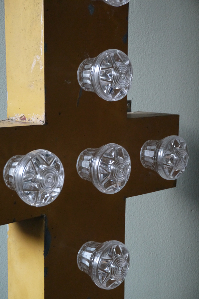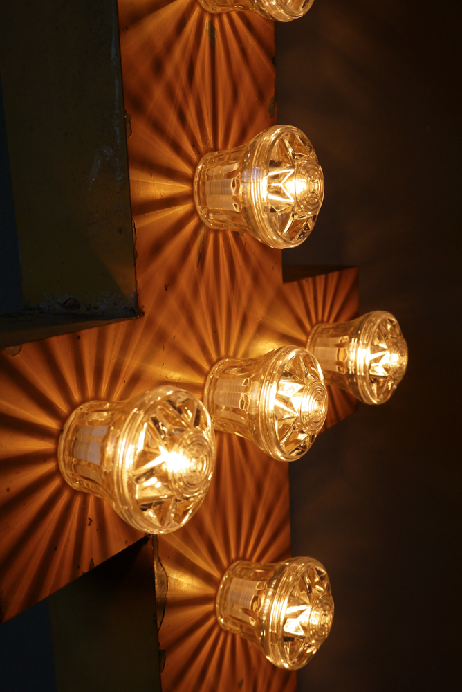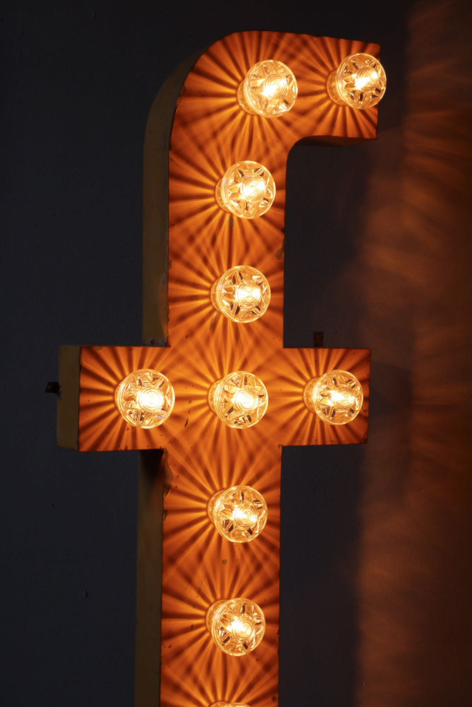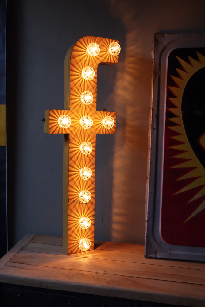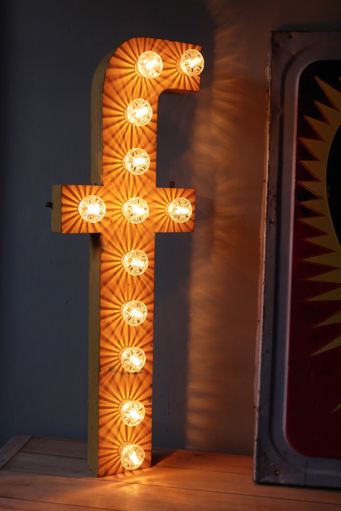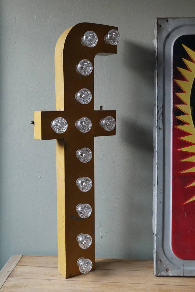 tres grande lettre F d'ancienne enseigne lumineuse façon fete foraine
