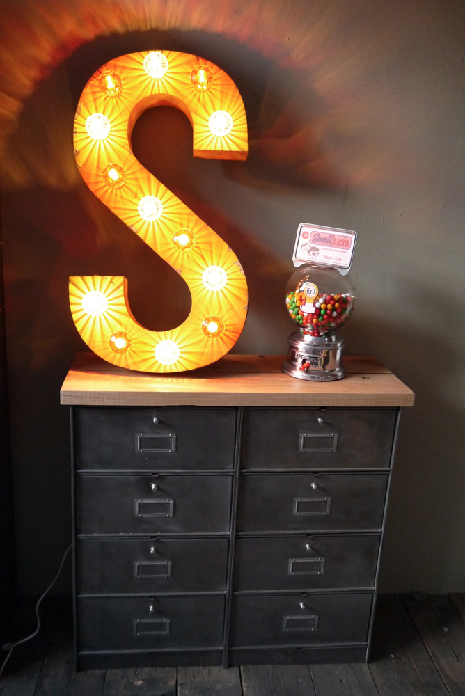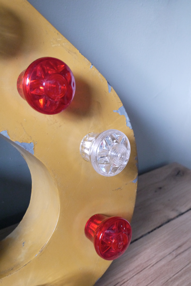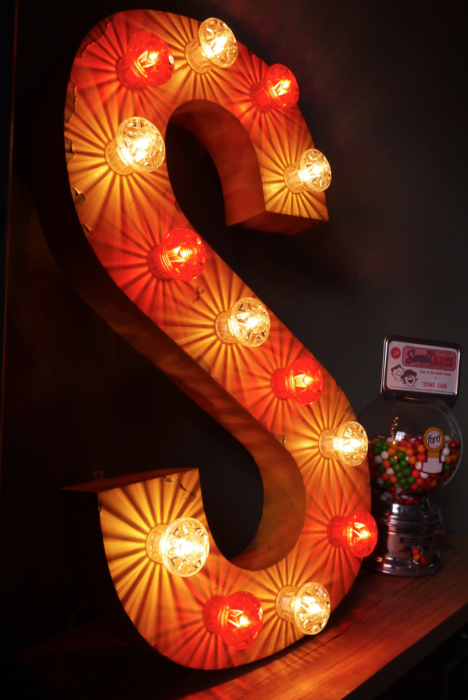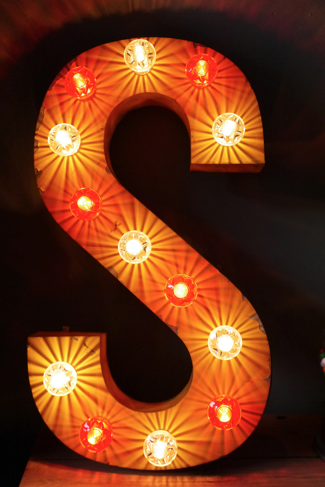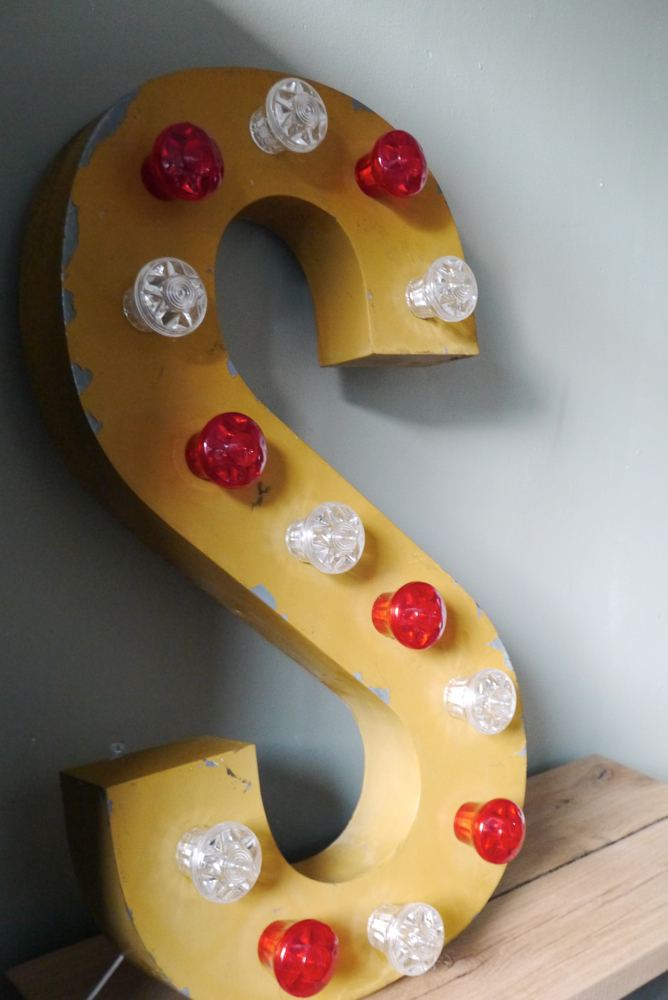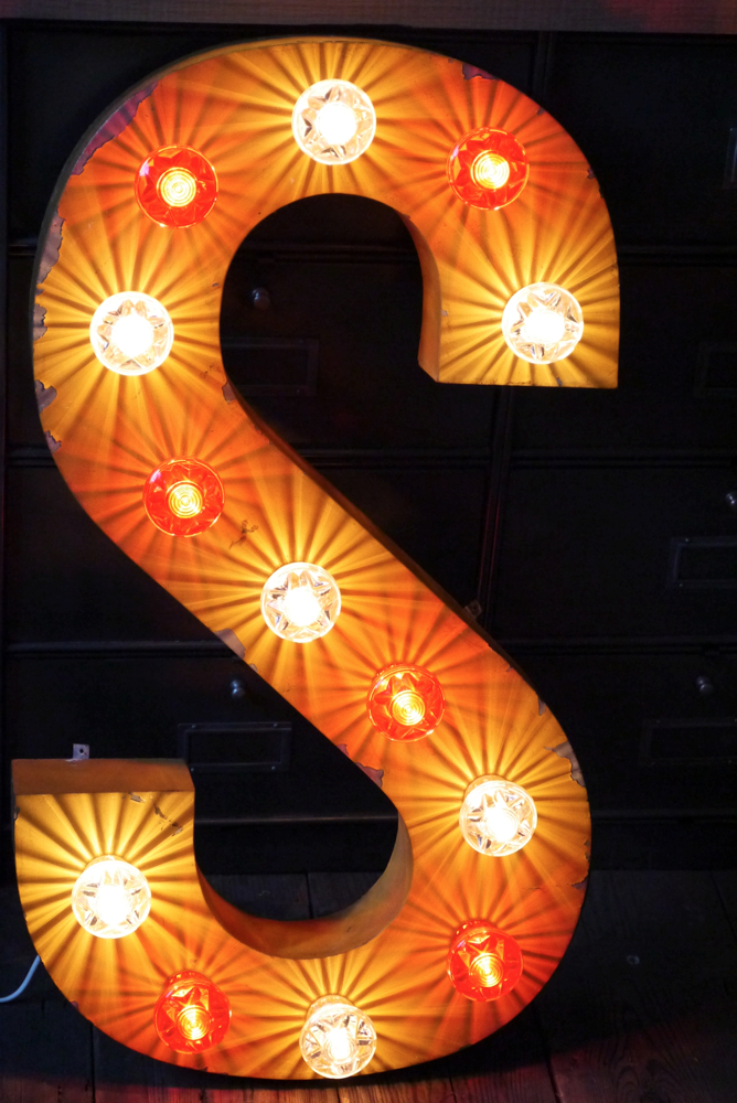 tres grande lettre S d'ancienne enseigne lumineuse façon fete foraine