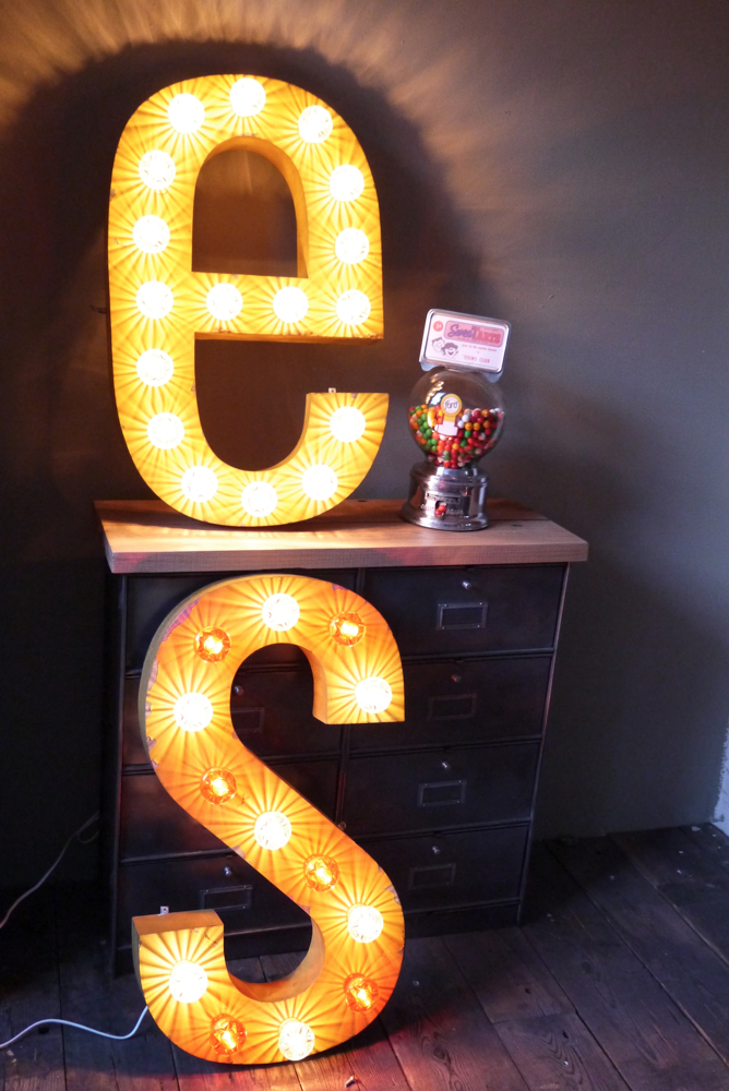 tres grande lettre S d’ancienne enseigne lumineuse façon fete foraine